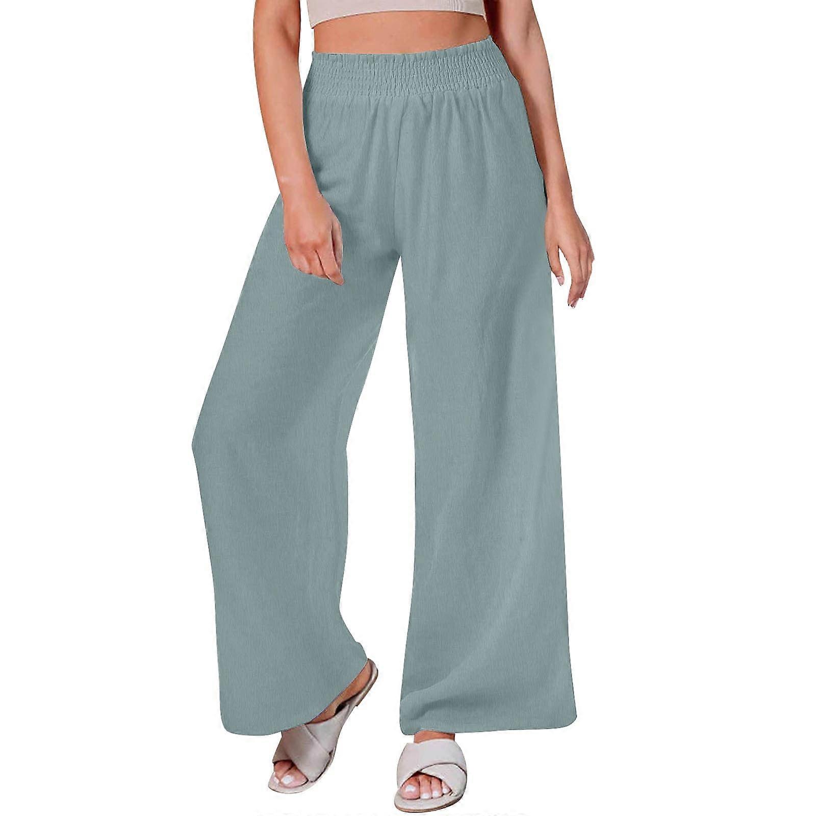 Women's High-Waisted Casual Trousers, Solid Blue Washed Elastic Waist Pants for Spring/Summer – M