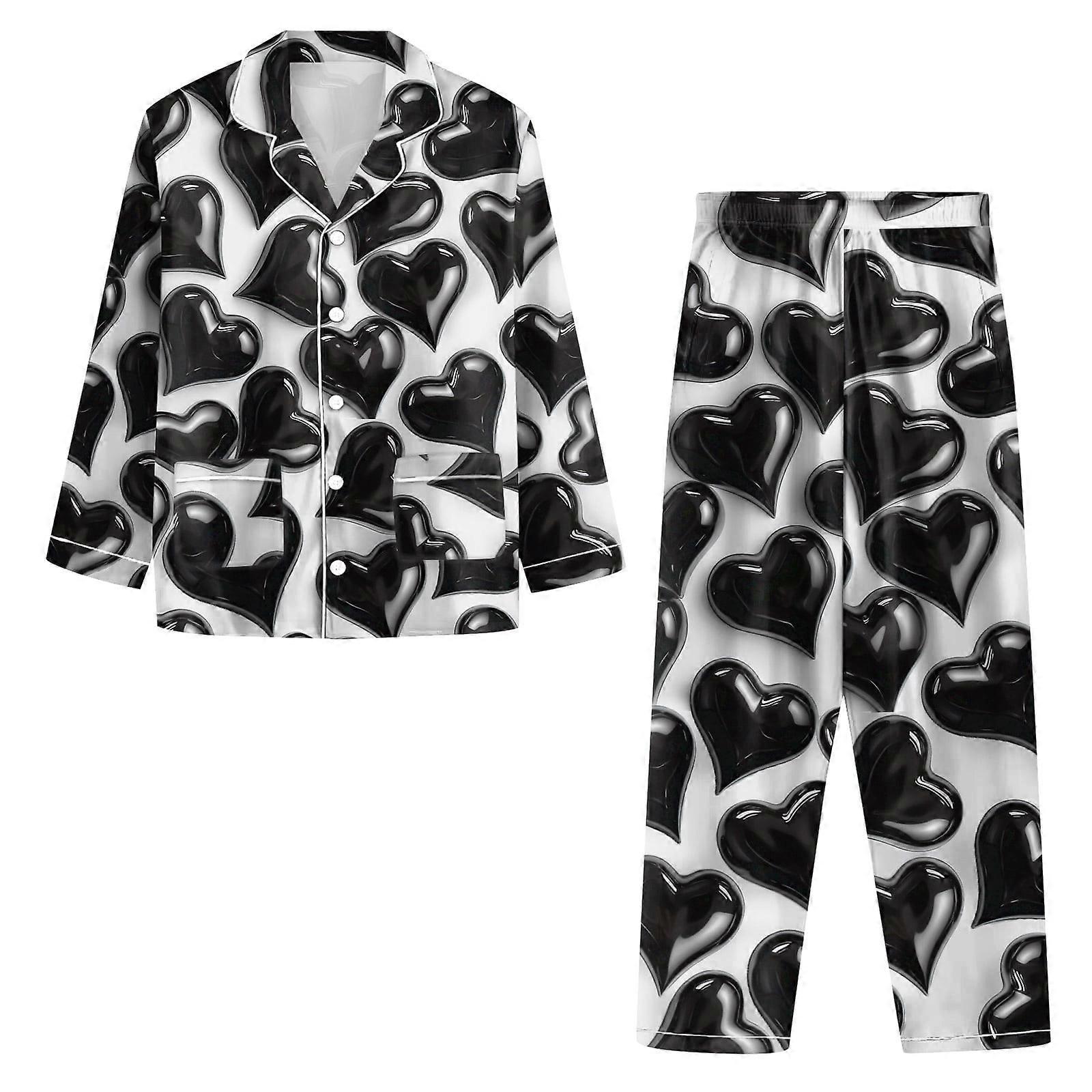 Women's Casual Loose Loungewear Set Valentine's Day Heart Print Top and Pants Set Black Size XL