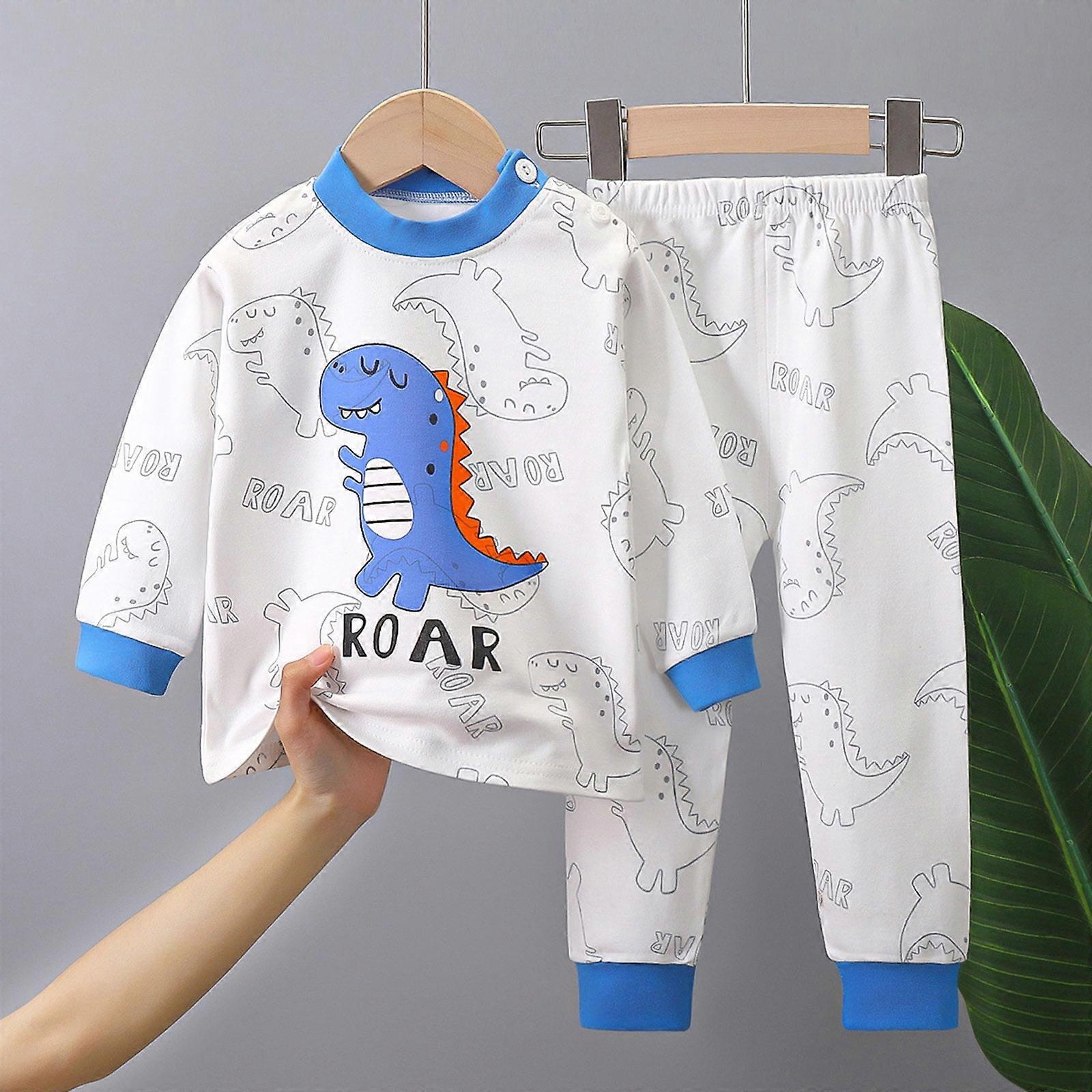 Two Pieces Pajama Set for Boys Girls Cartoon Print Toddler Pj Cotton Long Sleeve Tee Pants Sleepwear Outfits Blue 6-12 Months