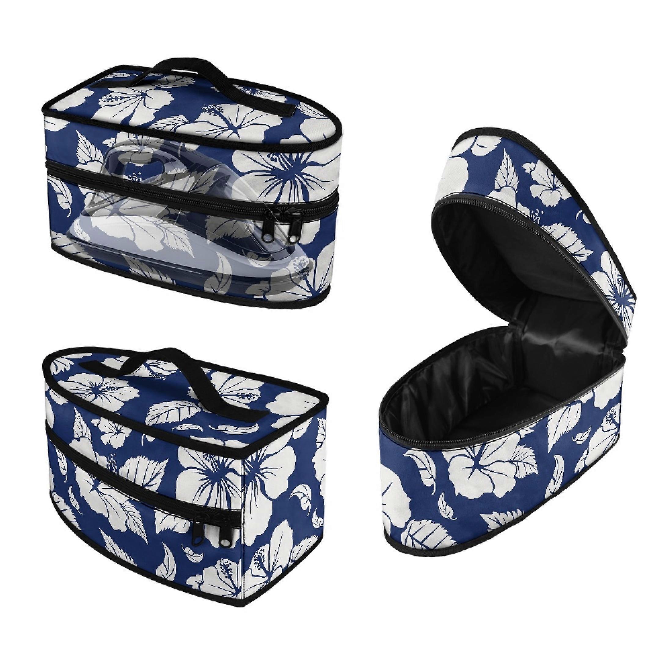 White Hibiscus Pattern Iron Organizer Lightweight Iron Accessories Protective Travel Steamer Bag Handheld Travel Steamer Organizer, Case Only