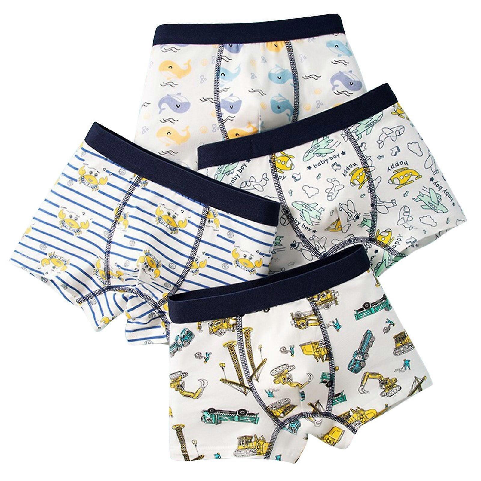 4PC Kids Toddler Boys Underwear Boxer Briefs Cotton Comfort Breathable Crab Prints Shorts Boxer Underpants White 6-7 Years