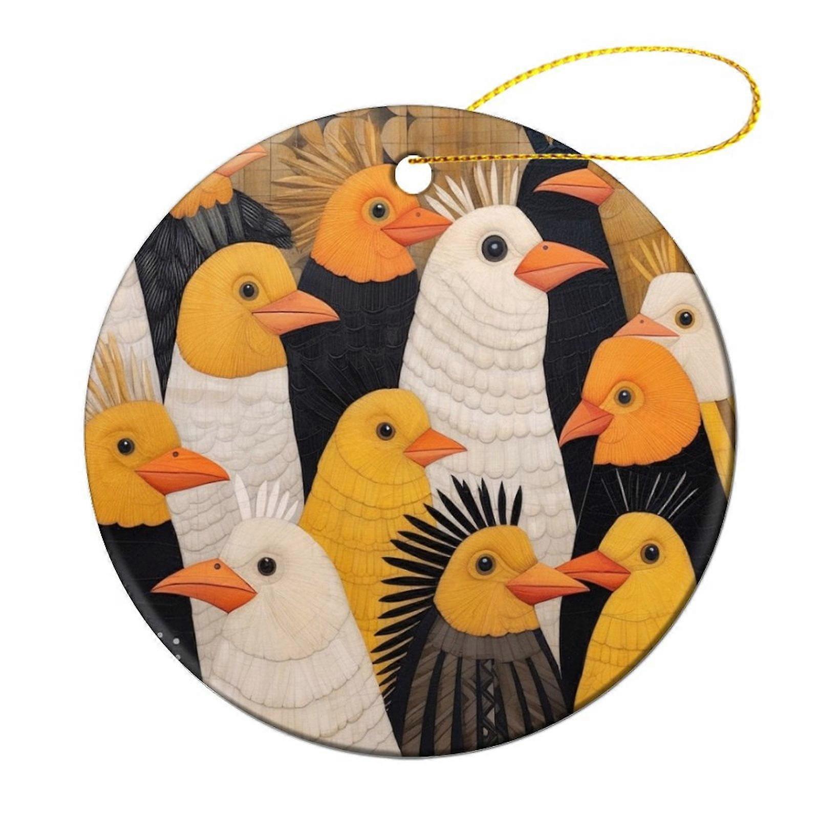 Black & White/Yellow Ceramic Chicken Ornament – Watercolor Style Christmas Tree Decor, Hanging Pendant Gift for Women, Birthday Keepsake