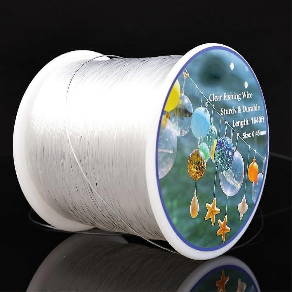 Clear Fishing Wire 1640ft, 0.45mm Strong Invisible String for Hanging Decor, Balloons, Crafts, Jewelry Making, Beading, Bracelets, Necklaces, Party