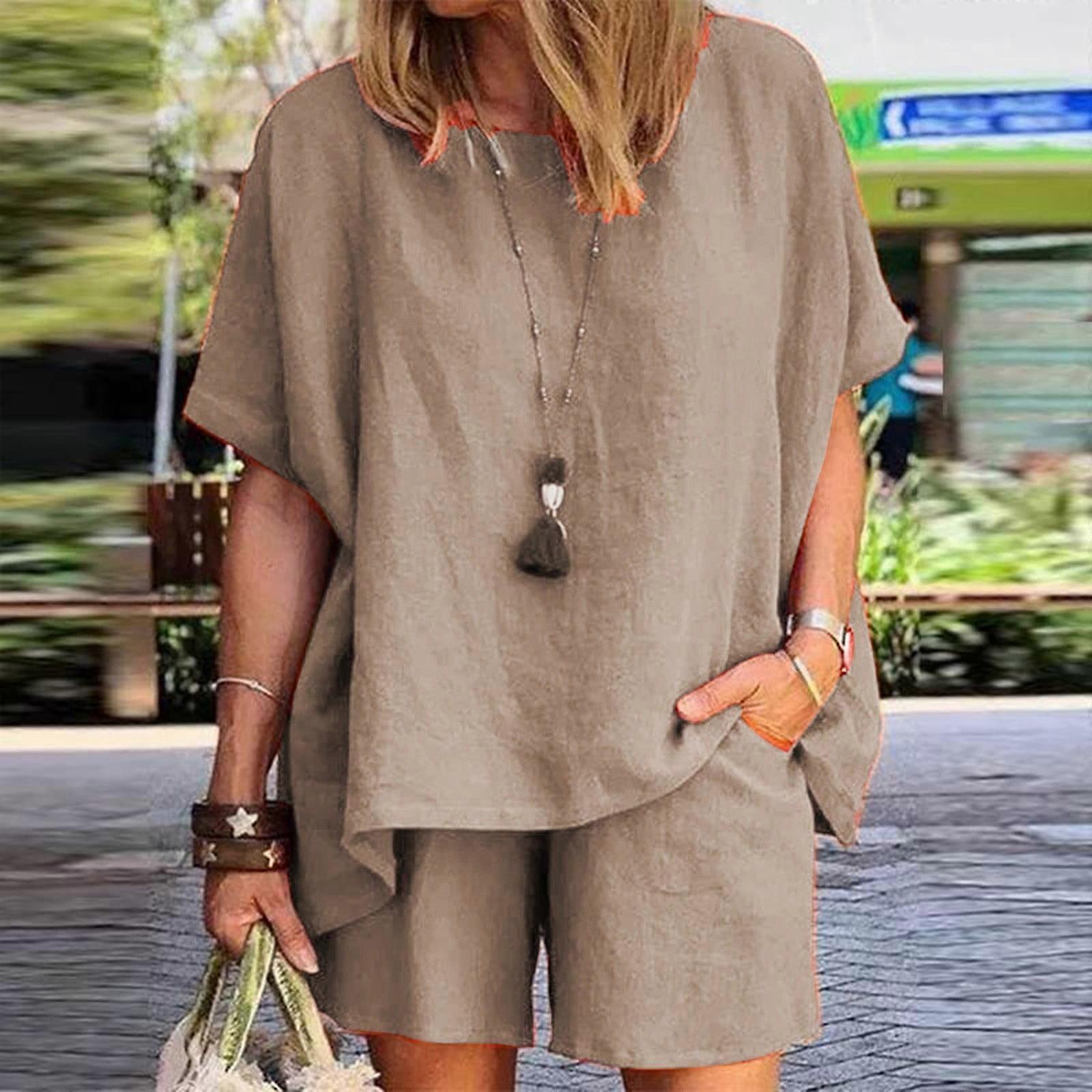 Lounge Sets for Women Comfy Sets for Women Clothing Ladies Loose Casual Round Neck Solid Color Two Shorts Suit Two Piece Sets for Women Two Piece Sets for Women Summer Coffee XL