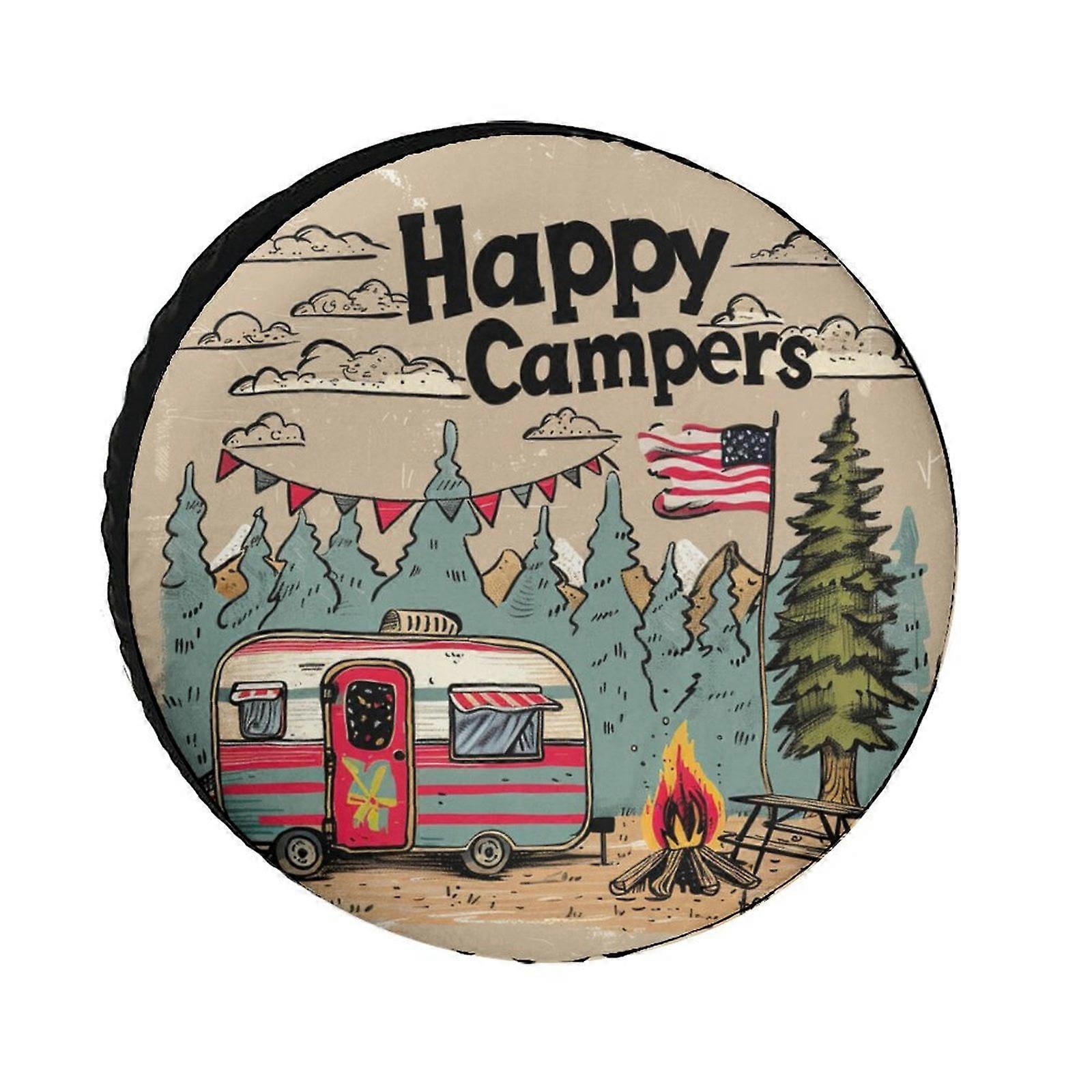15" Camping Spare Tire Cover – Weatherproof & Dust-Proof, Universal Fit for Trailers, SUVs, Trucks, Campers; Compatible with Happy Campers