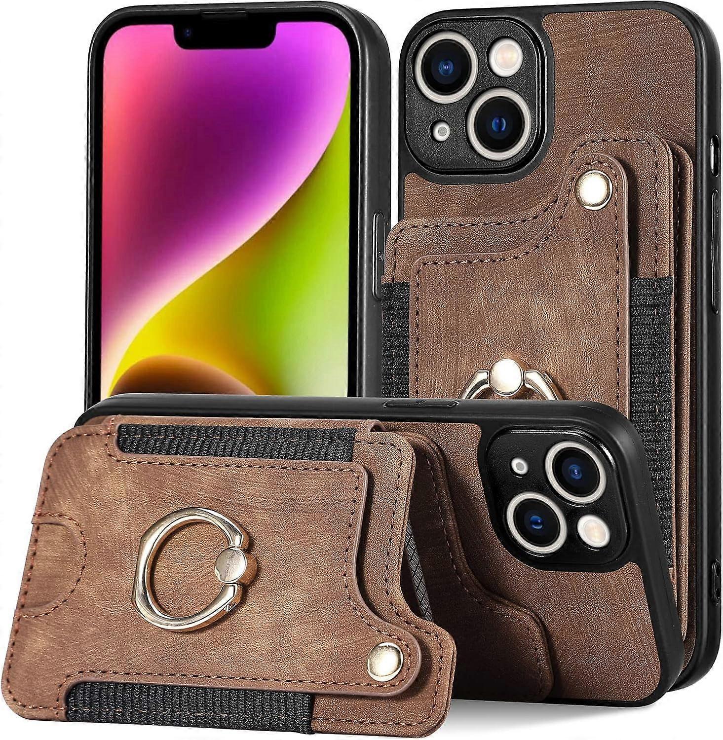 Vintage Leather Card Holder Phone Case w/ Metal Ring Stand & Lanyard, compatible with iPhone X, XS, XR, 8, 7, 6, 6S, SE, Plus, Max (Brown, XS Max)