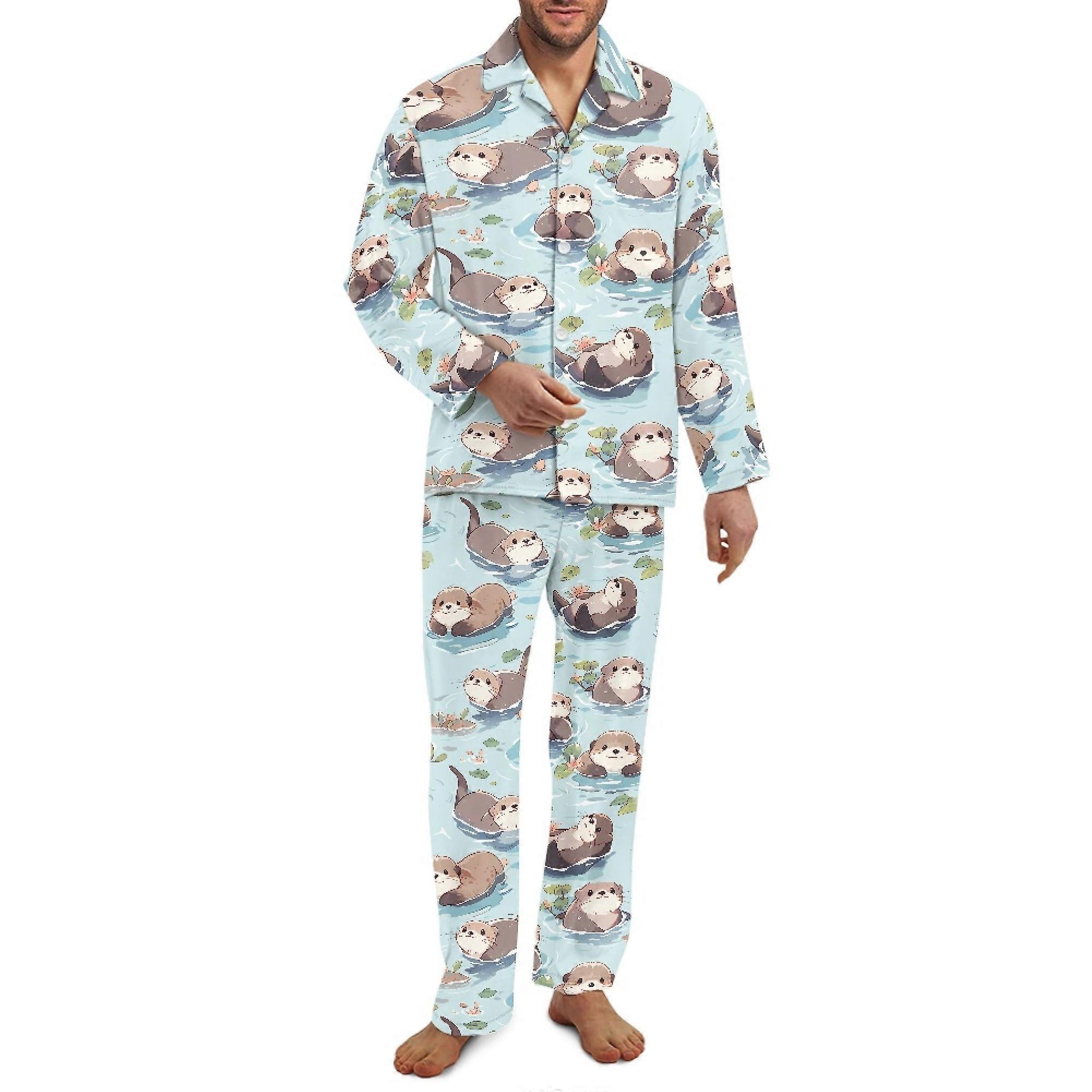 American Flag Pajamas for Men, 2-Piece Button-Down Long Sleeve Sleepwear Set (Size 2XL), Lightweight Loungewear, Compatible with 4th of July