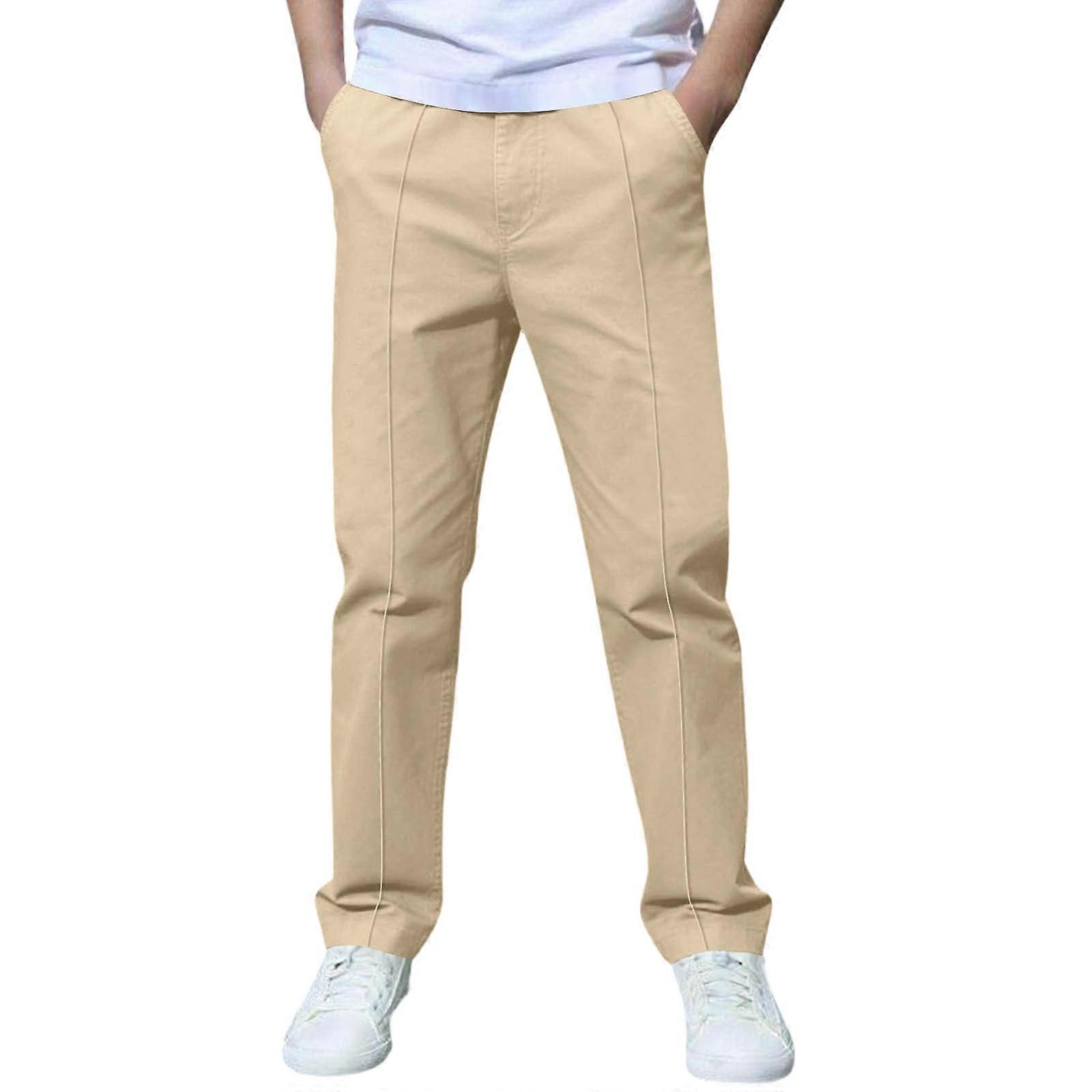 Boys' Beige Stretch Chino Pants with Pockets – Pull-On School Pants for Kids 6-7 Years, Compatible with Back to School