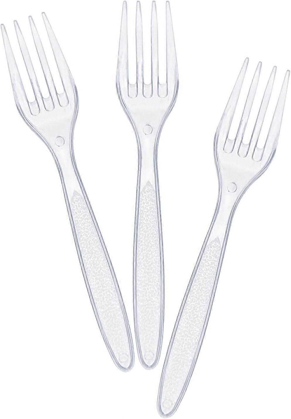 Product Description Mini Forks & Sporks Mini Forks Convenient & Disposable: These disposable small forks are designed for ease and convenience. After use, simply dispose of them. Just enjoy your meals without any cleaning, whether it's for outdoor picnics, office lunches, or family gatherings. High-Quality Clear Plastic: Made from high-quality transparent plastic, these mini forks not only look stylish but are also durable and sturdy. The clear forks are free of any impurities, ensuring a clean and hygienic dining experience. Plus, the high-quality material ensures that the forks are heavy-duty and sturdy, resistant to bending and breaking. 4.7-Inch Size with Great Utility: Despite their compact 4.7-inch size, these salad forks pack a big punch. They're the perfect size for portability and suitable for a wide range of foods. Whether you're sampling new dishes, enjoying fruits, desserts, or appetizers, these forks will meet your needs. Versatile for Various Scenarios: These dessert forks are suitable for a wide range of occasions and purposes. They're perfect for outdoor picnics, office lunches, family gatherings, and even catering businesses. Especially great for sampling, fruits, desserts, and appetizers, they will enhance your dining experience with ease and convenience. 100-Piece Pack: Each package contains 100 disposable mini forks, meeting all your dining needs for various occasions. Whether it's for daily household use or large-scale catering events, this pack will never let you down. The disposable design eliminates the need for fork storage and cleaning, making it hassle-free and convenient.