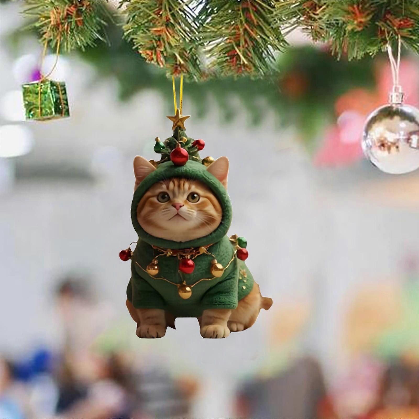 Cat Ornaments for Christmas Tree - Orange Cat Christmas Ornament, 2D Acrylic Fat Cat Gift, Graceful Cat Tree Decor, Home Holiday Decoration