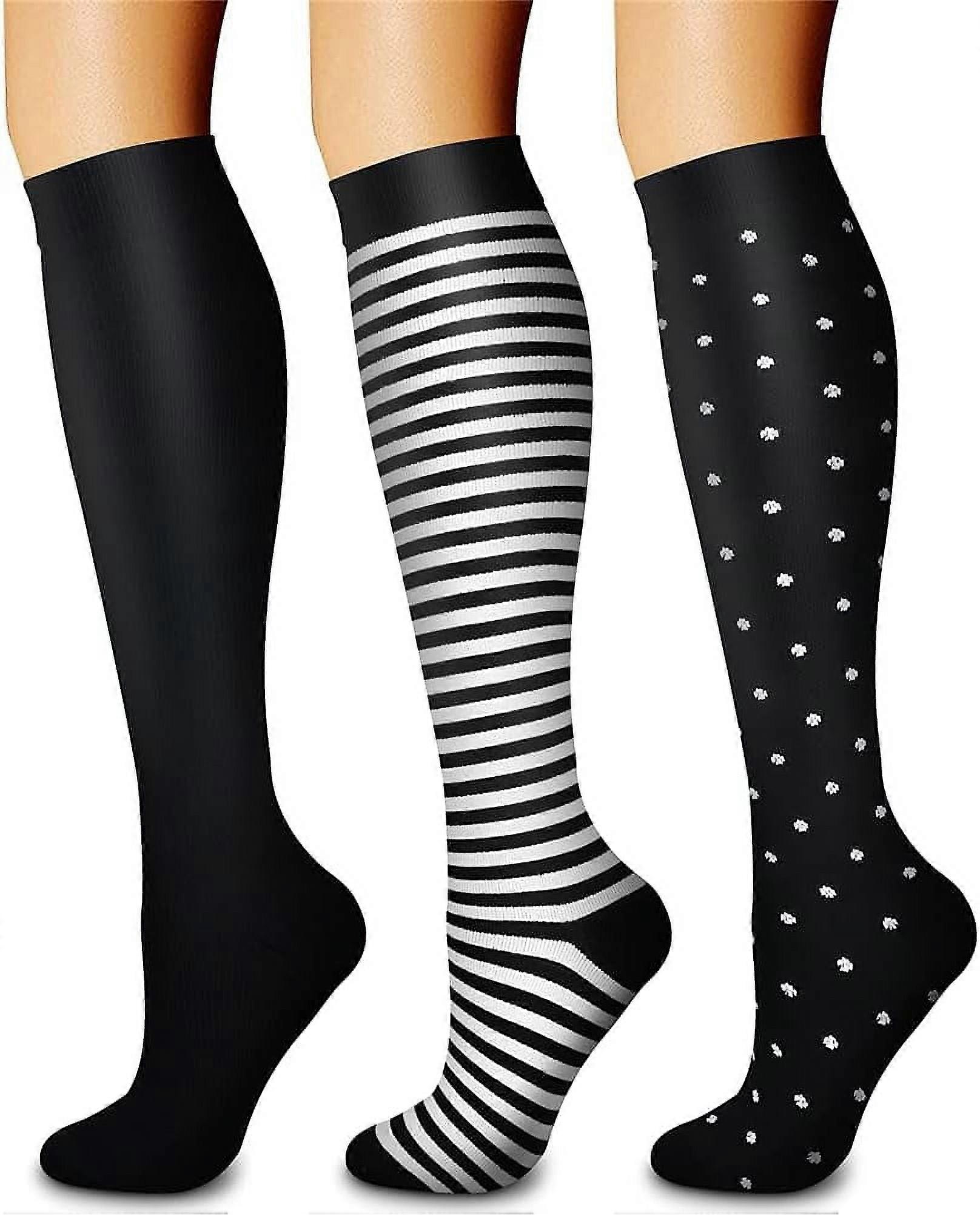 3 Pairs 20-30 mmHg Compression Socks for Women & Men, Knee-High Sport Socks for Running, Cycling – Compatible with S/M