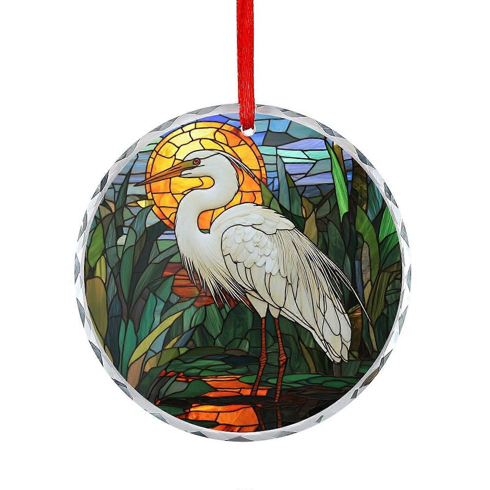 Glass Christmas Ornament Heron in The Florida Everglades Crystal Ornament 2025 White Heron at Sunset Holiday Decor And Xmas Gifts Ideas