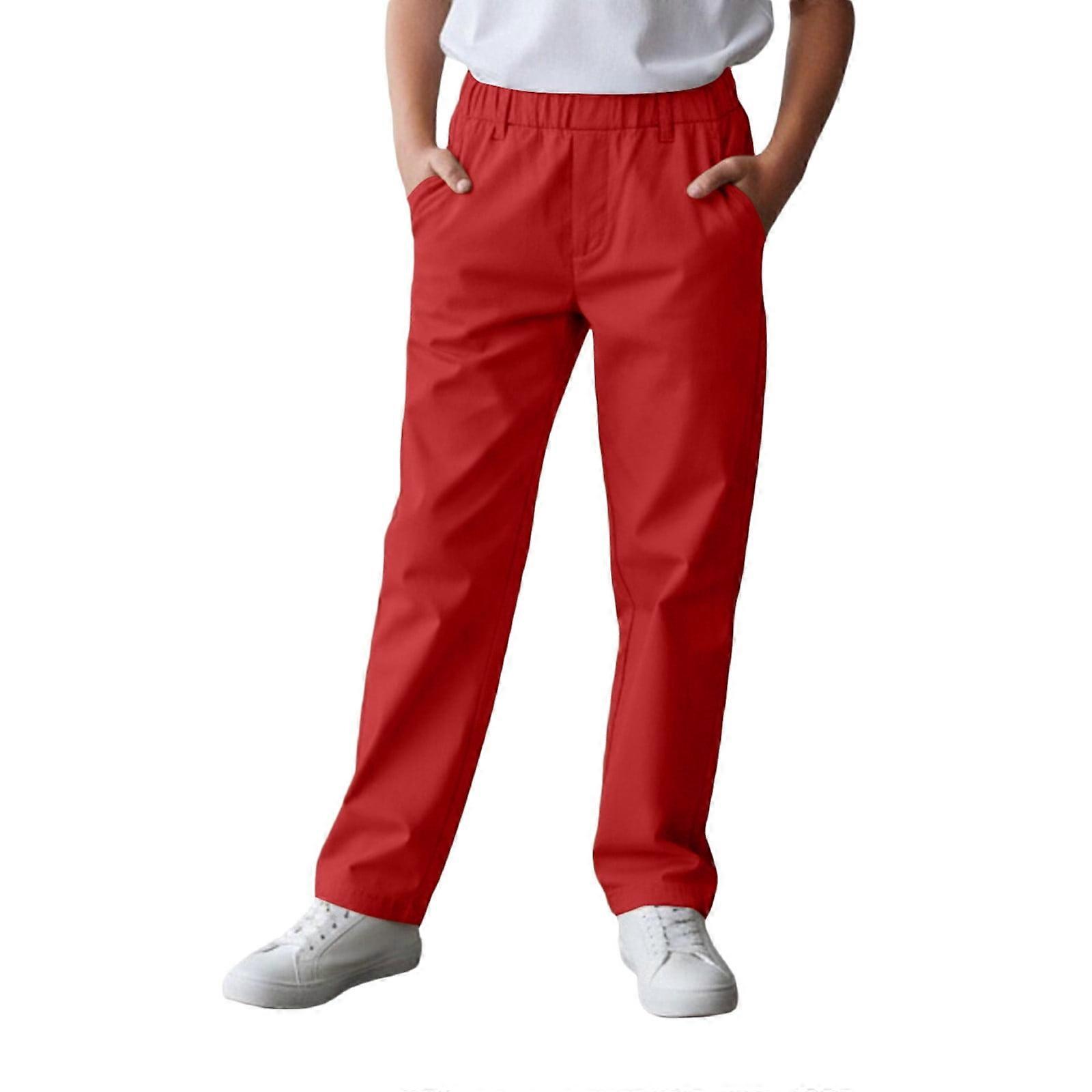 Boy Uniform Pants – Stretch Chino Pants with Pockets, Pull-On Style, Red, Compatible with School Dress Code, Ages 12-13