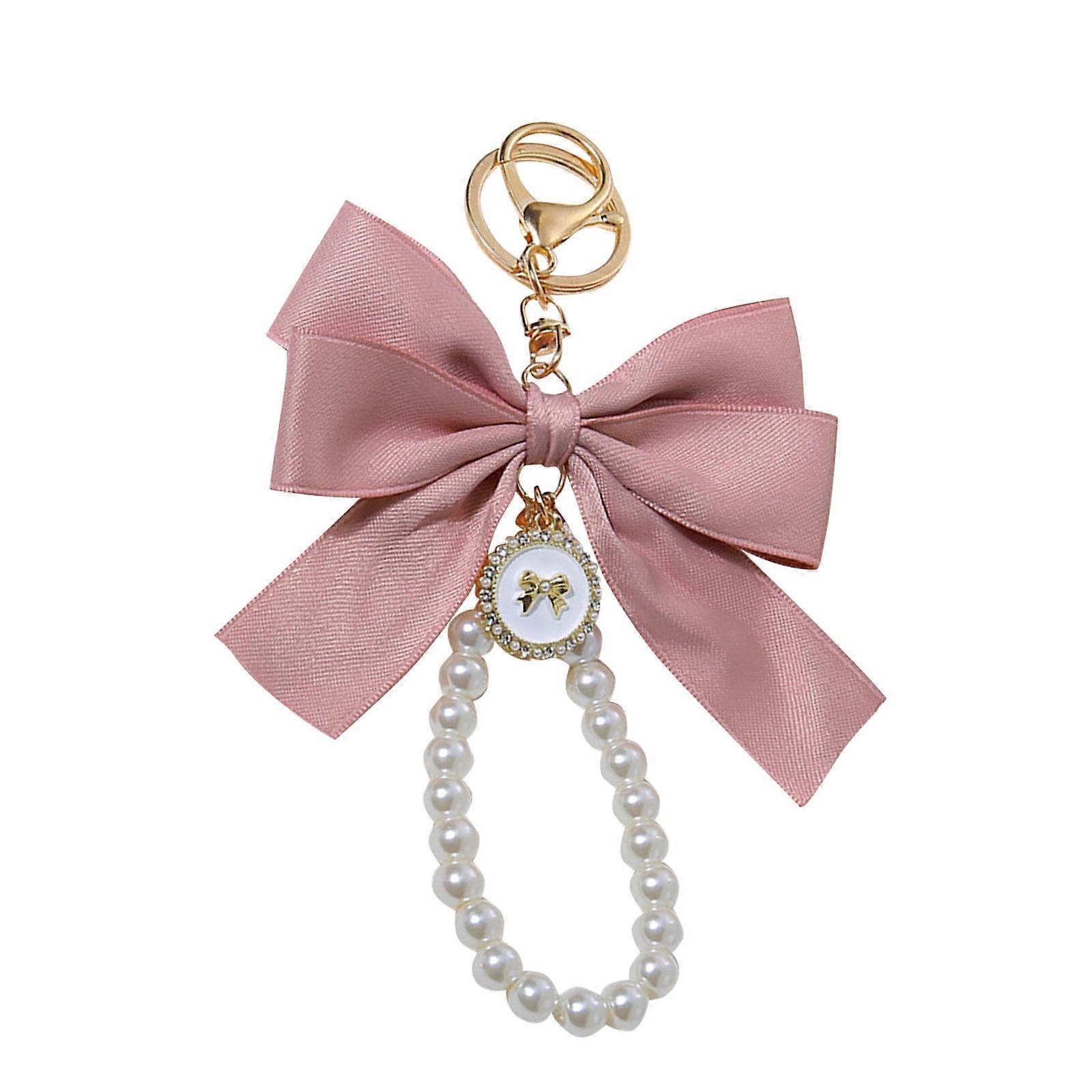 Cute Coquette Bow Keychain with Simulated Pearl, Ribbon Charm for Handbags, Purse, Backpack – Pink, Compatible with All Bags