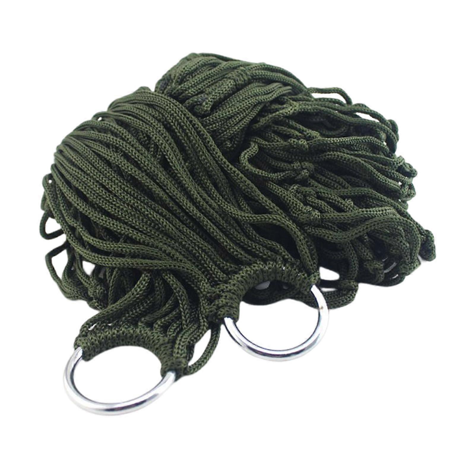 Portable Outdoor Sport Hammock Swing Net Mesh Nylon Rope Sleeping Bed with Hooks Camping Hammock for Beach Patio Courtyard Garden Travel Dark Green