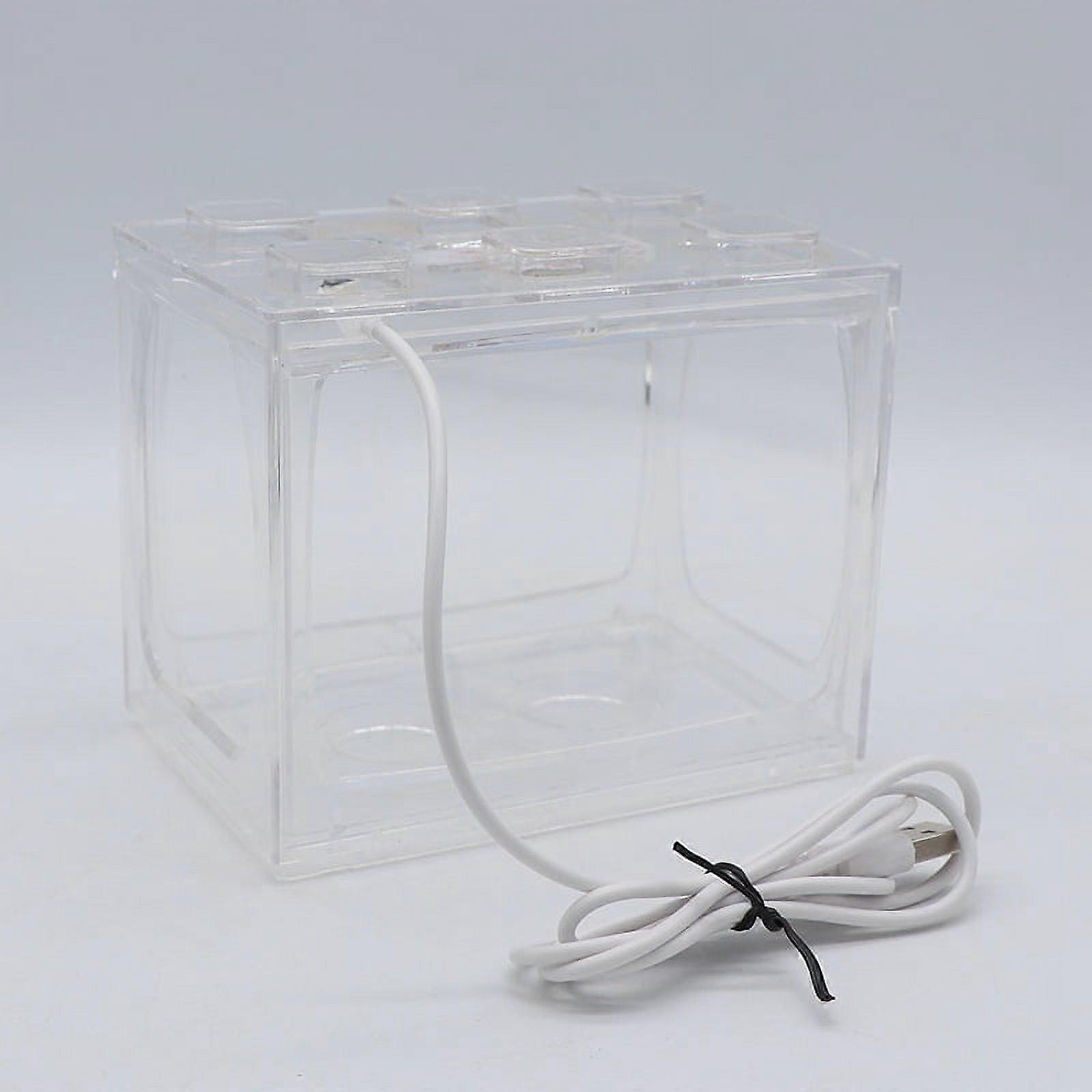 PENGXIANG Mini USB Aquarium – Transparent Acrylic Desktop Fish Tank with Lights, Compatible with Goldfish & Aquascaping