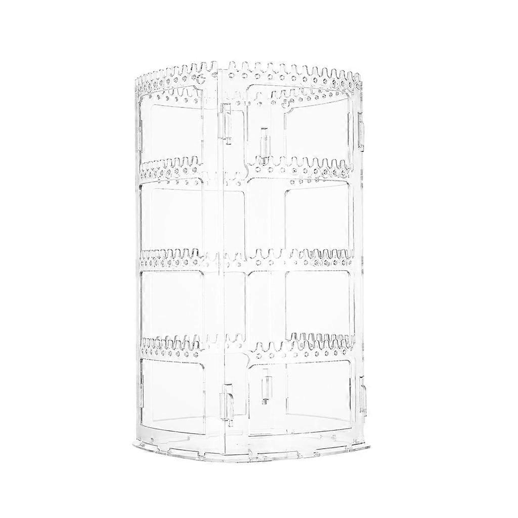 360° Rotating Earring Holder & 4-Tier Jewelry Organizer Stand with Holes/Grooves for Necklaces, Earrings, Piercings – Clear