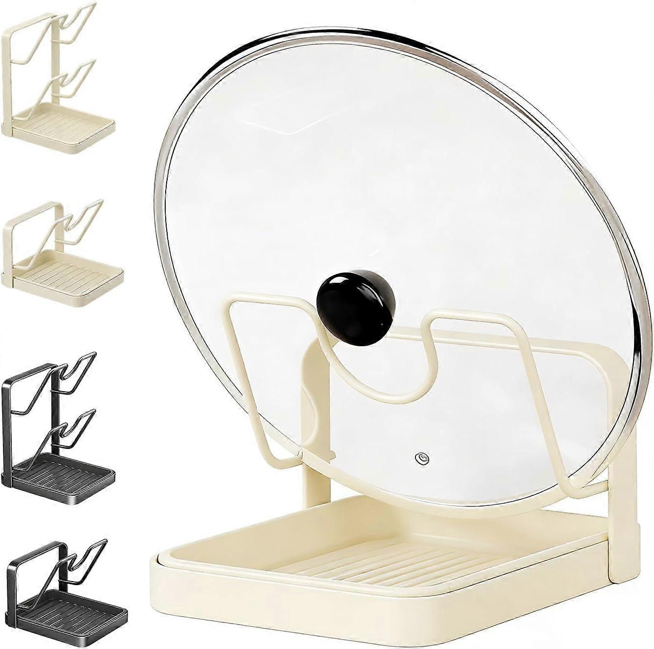 Leutsin Countertop Pot Lid Holder with Spoon Rest, Compatible with Stovetop – Beige, Single-Layer