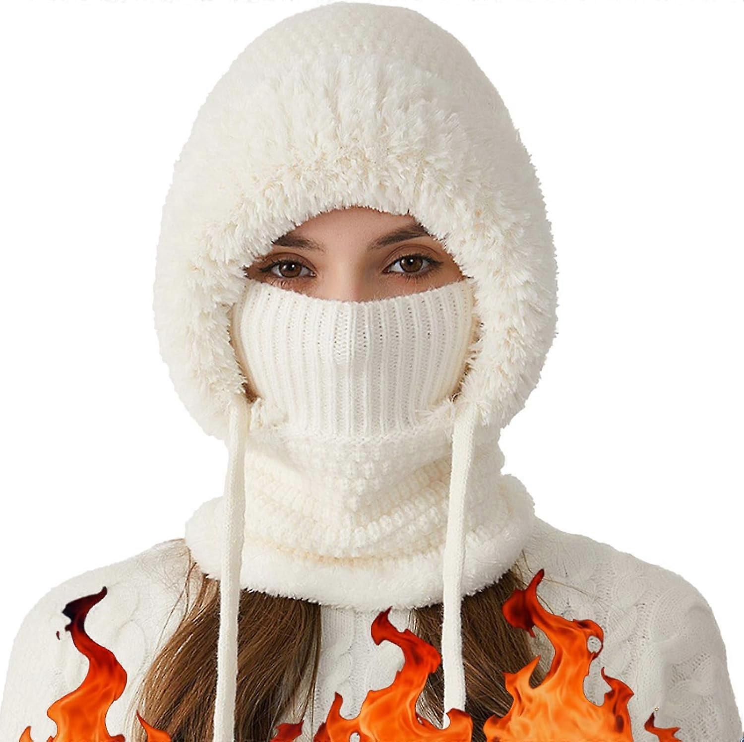 3 in 1 Winter Beanie hat with Scarf and Mask for Women, Windproof Warm Balaclava Hat for Skiing, Cycling