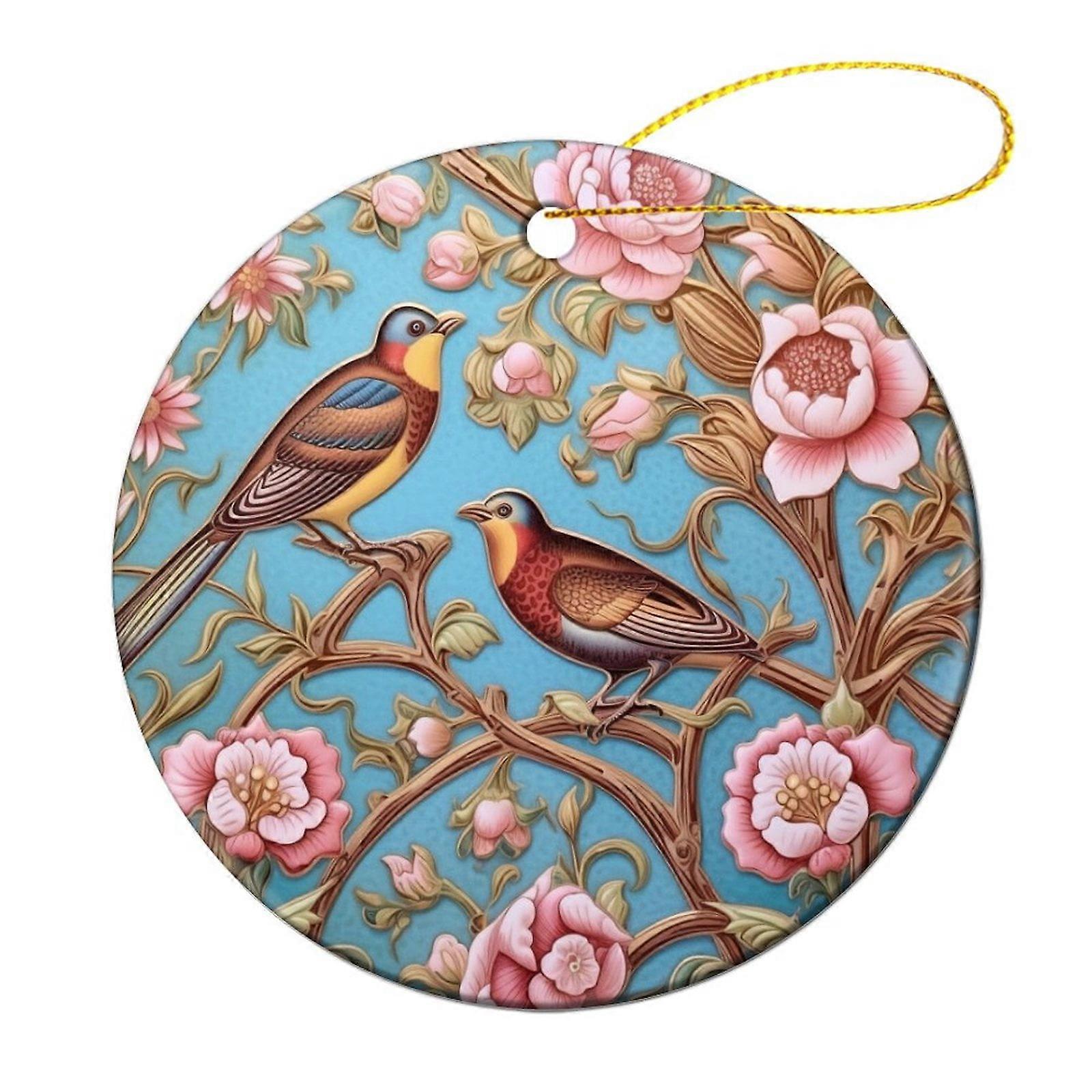 Victorian Flower & Bird Christmas Ornament – Country Style Keepsake Decor for Xmas Tree, Compatible with Holiday Gifts