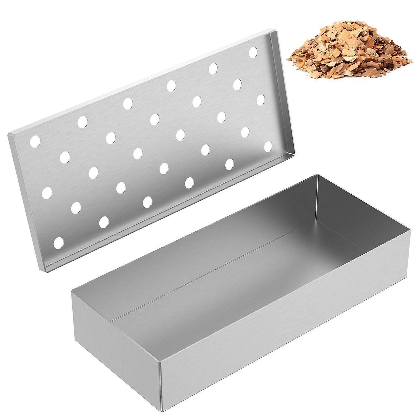 Stainless Steel Wood Chip Smoker Box with Lid – Compatible with Gas & Charcoal Grills