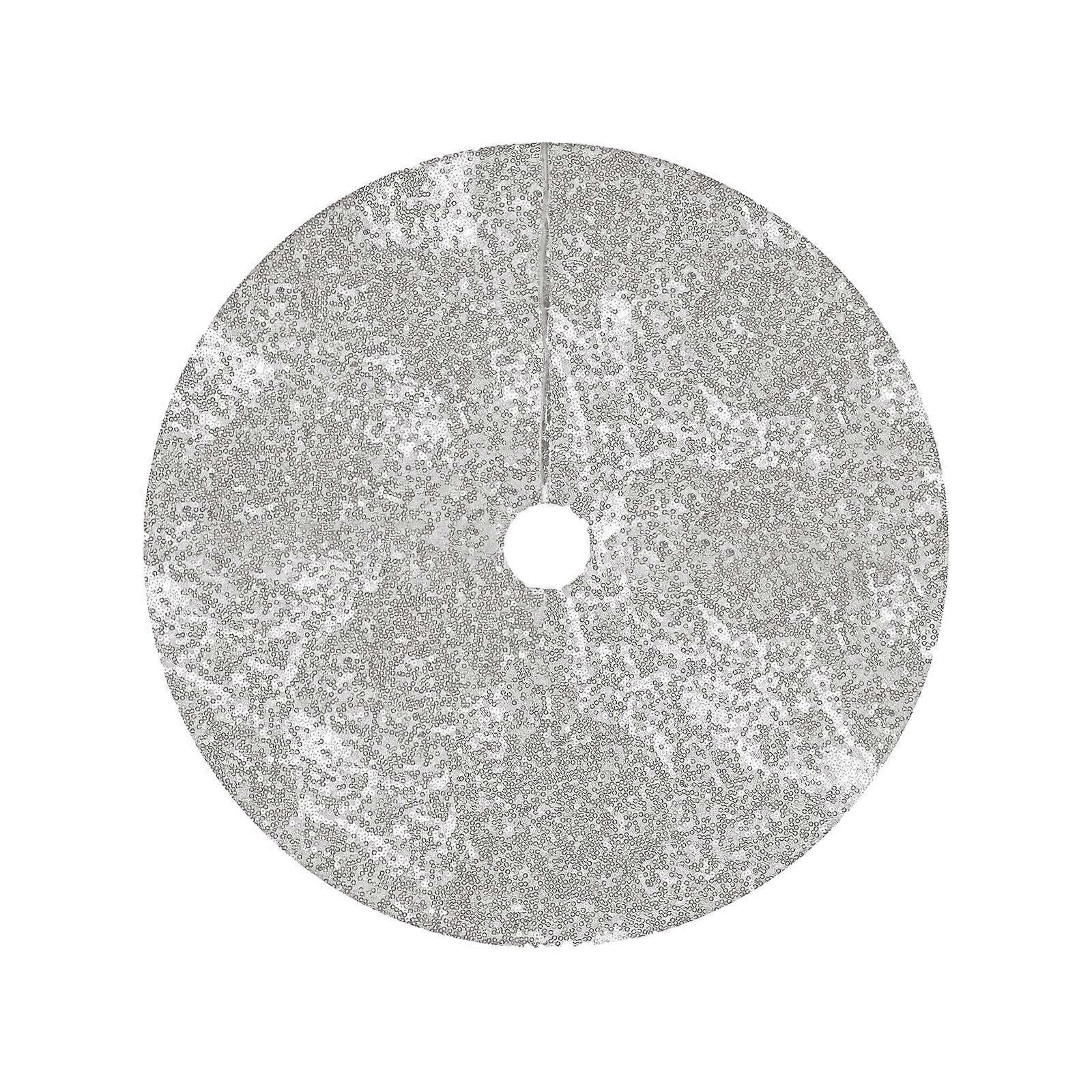 Christmas Tree Skirt, 24Inch Sequin Xmas Tree Skirt, Glittering Christmas Tree Cover Skirt Mat for Holiday Christmas Tree Ornaments, Silver