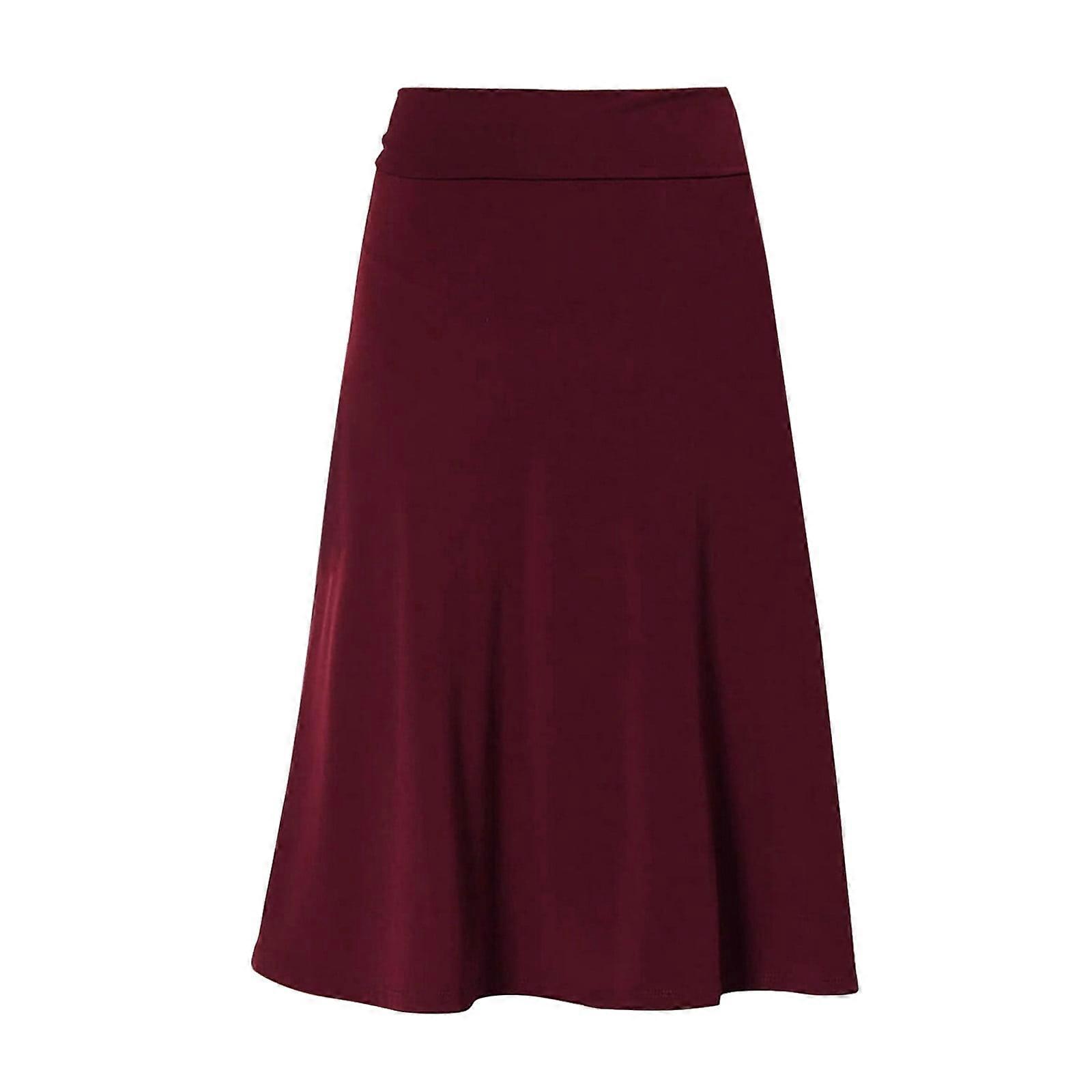 Circle Skirt Skirts Women's Summer Casual High Waisted Soft A Line Skirt With Solid Color Knee Length Skirt Skirts Skater Skirt (Red,L)