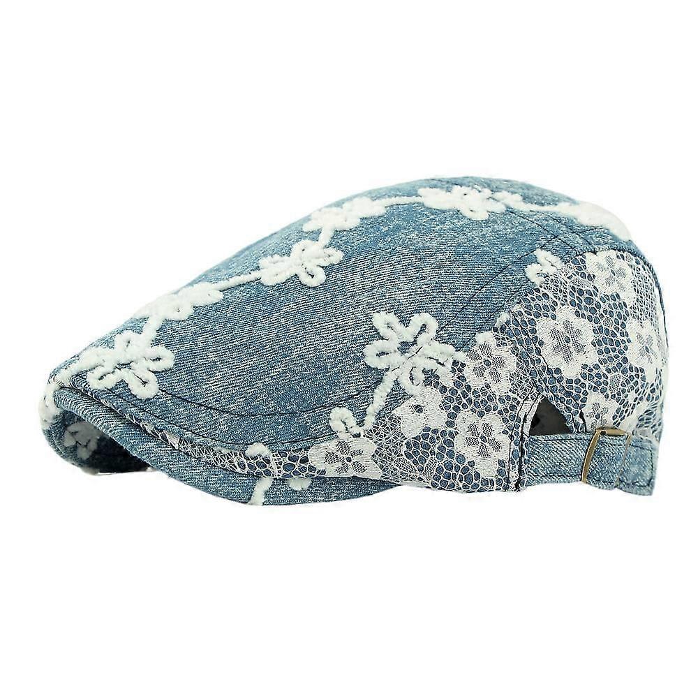 Majeure Denim Newsboy Cap with Lace Detail, Vintage Washed, Adjustable