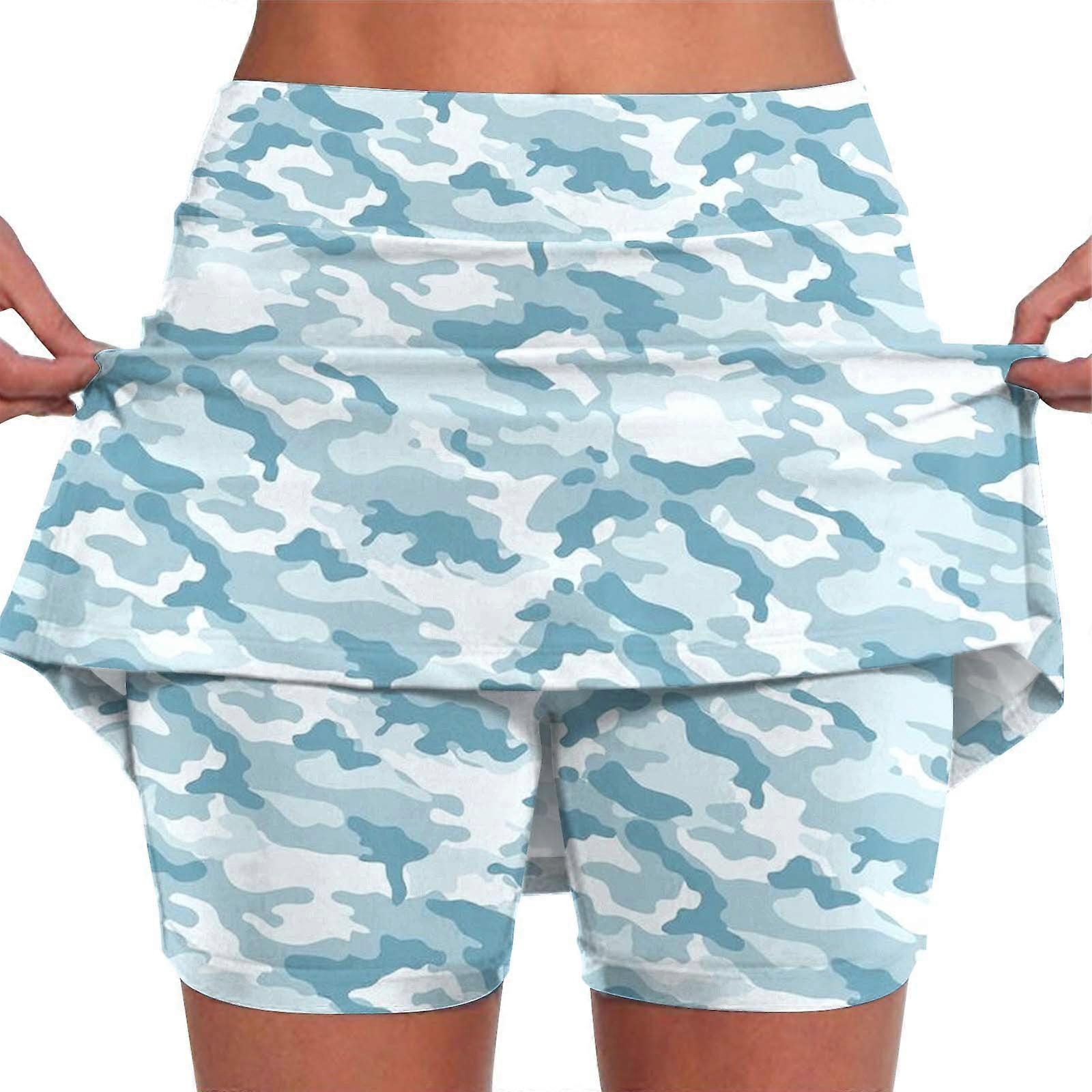 Women's Camo Pleated Skort with Pockets – Blue & White Tennis Skirt, Mid-Rise Athleisure Skirt for Golf & Tennis (XXXXXL)