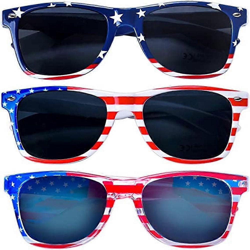 3 Pairs American Flag Sunglasses – Patriotic 4th of July, Memorial Day Decor, Party Favors, Compatible with All Faces