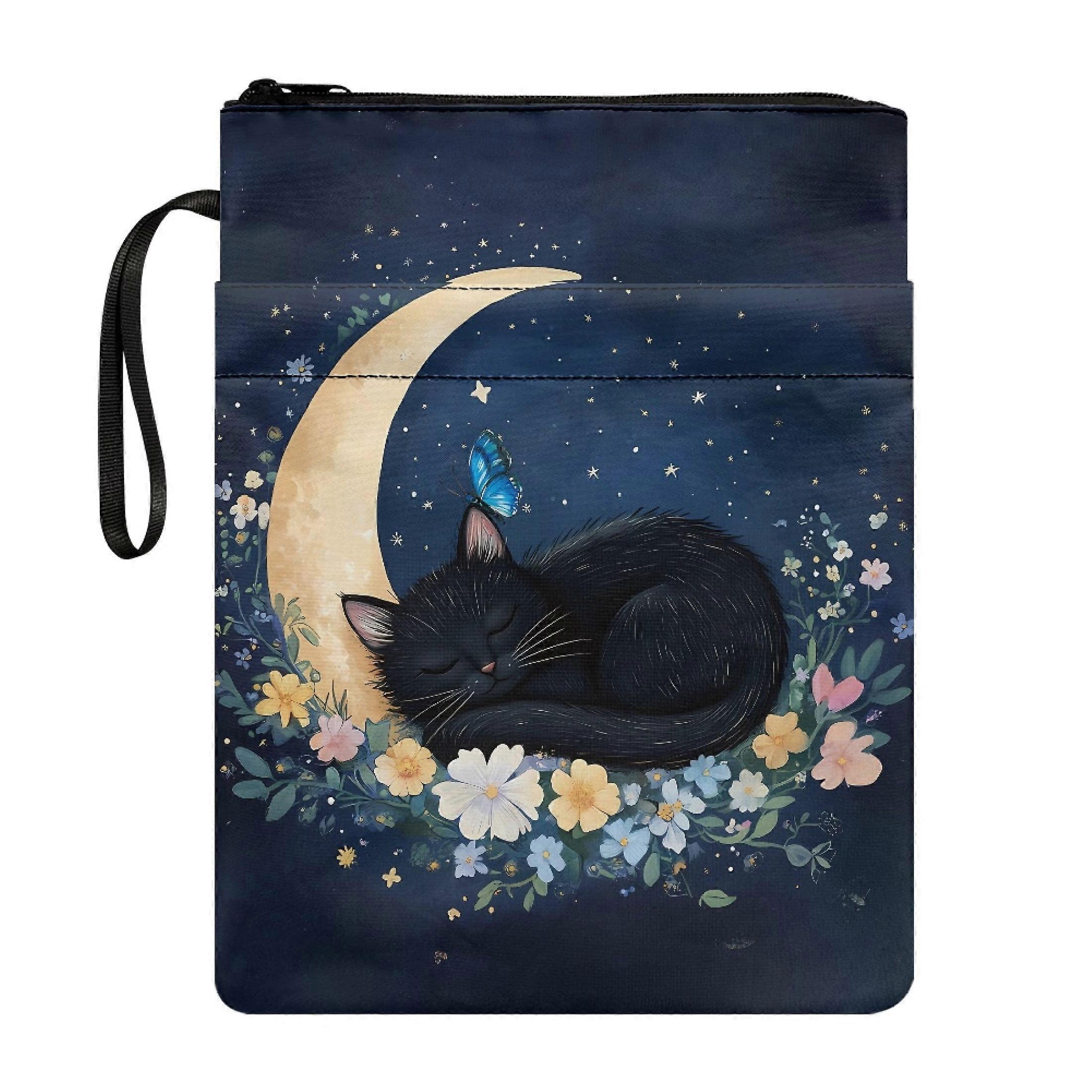 Moon and Floral Pattern Bible Case Bag Classic Book Organzier Holder with Book Protection Polyester Protector Wrap Bag for Librarian 8.66 x 11.42