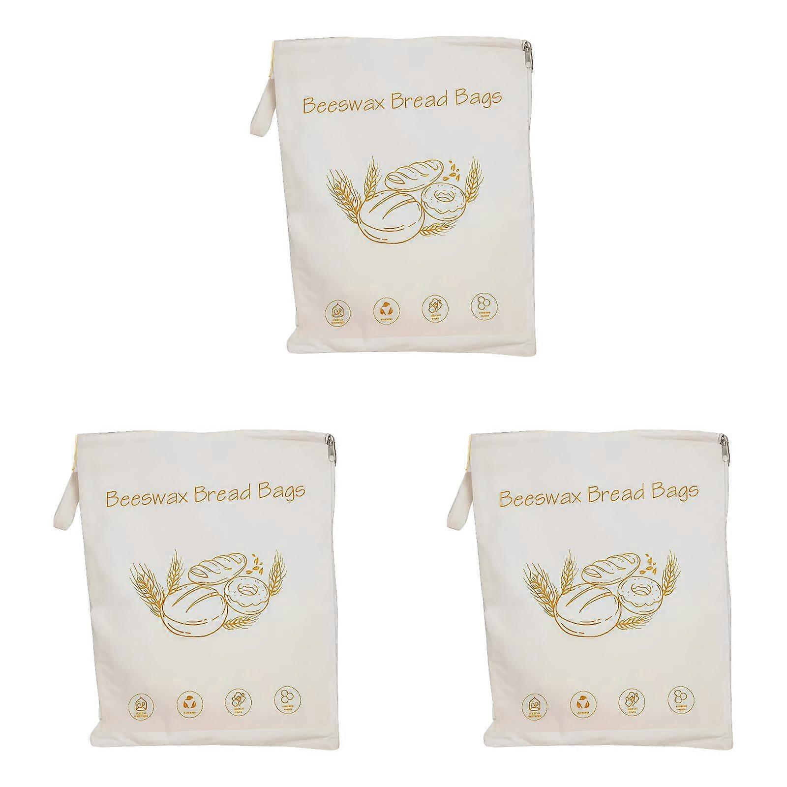 Reusable Beeswax Bread Bags for Homemade Bread, 3PCS XL Cotton Sourdough Storage, Eco-Friendly, Wide Zipper, Keeps Bread Fresh Naturally