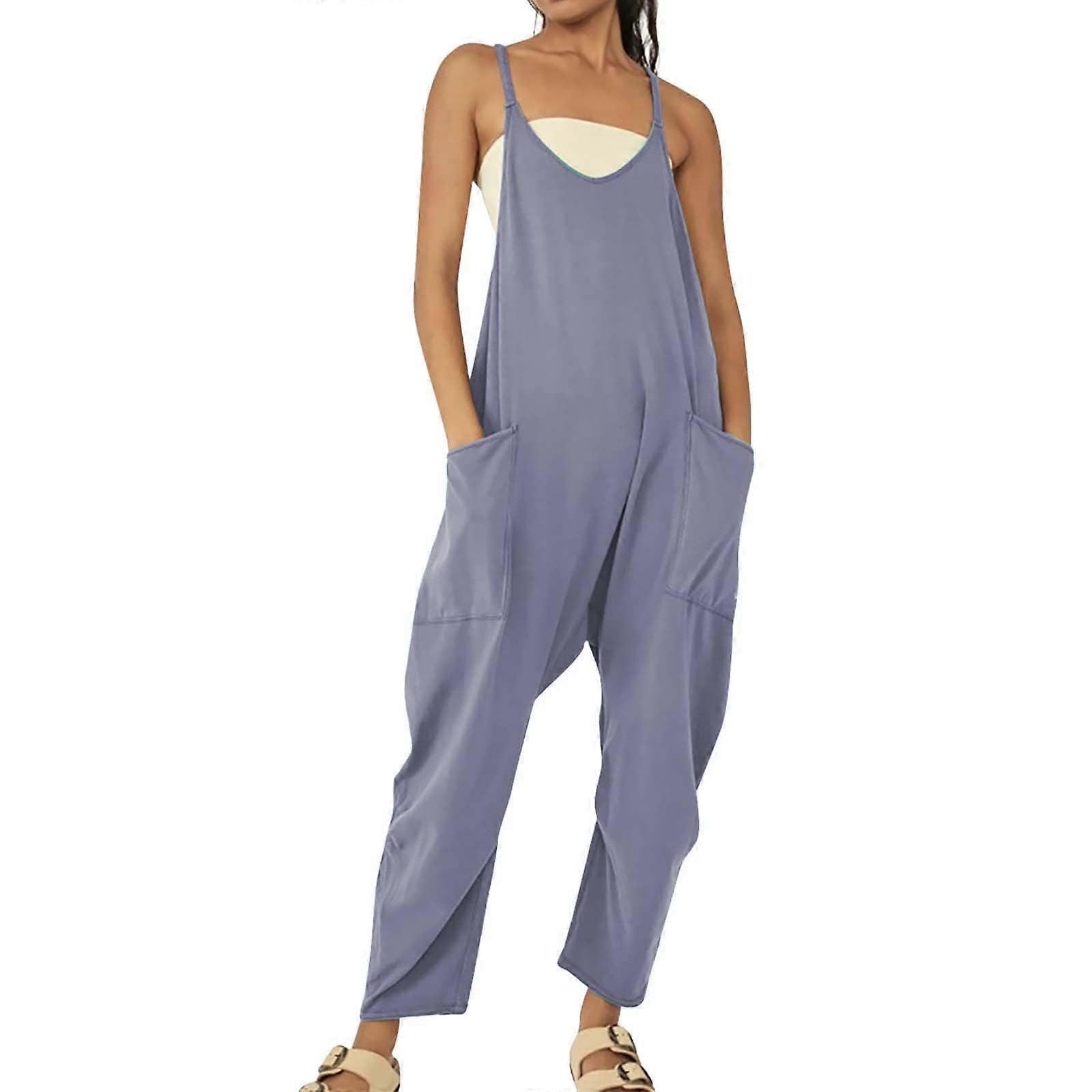 Women's Casual Sleeveless Jumpsuits V Neck Spaghetti Strap Overalls Long Pants Romper With Two Pockets