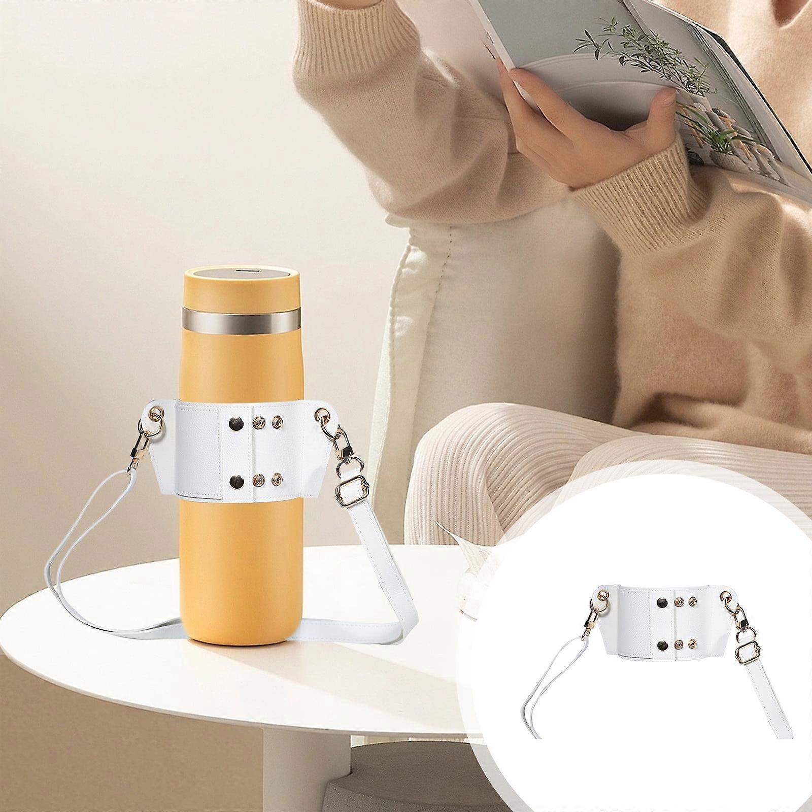 Adjustable Crossbody Strap for Water Bottles and Mugs with Double Metal Clasps and Synthetic Leather Handle