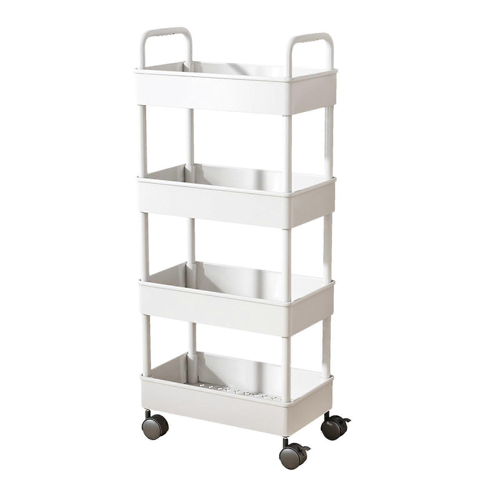 4-Tier White Kitchen Storage Cart with Armrests & Wheels – Compatible with Home, Office, Bathroom