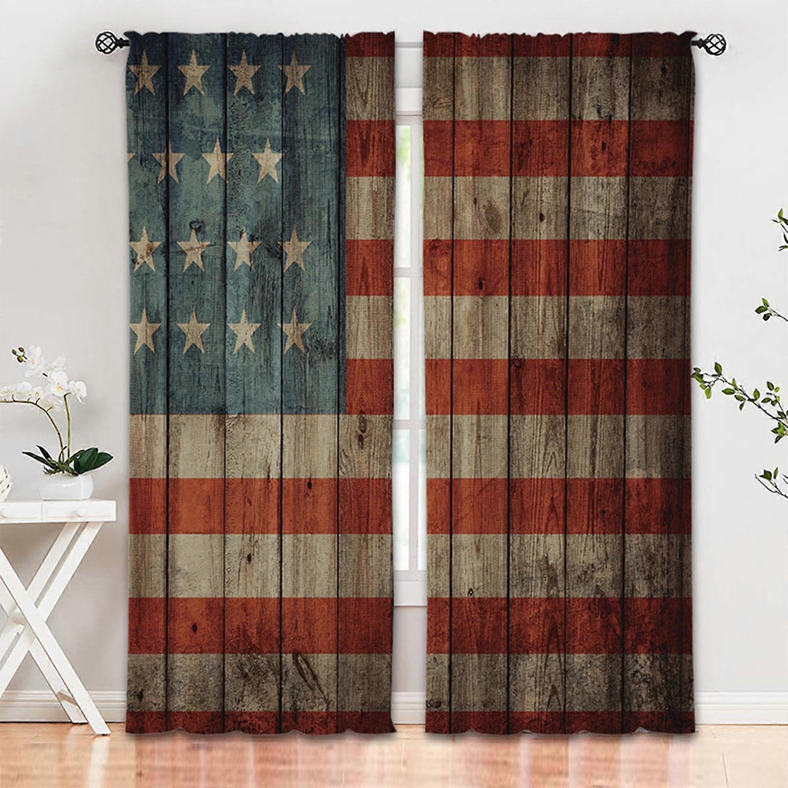 2-Panel National Flag Curtains, Retro Patriotic Blackout Drapes with Rod Pocket – Compatible with Standard Rods