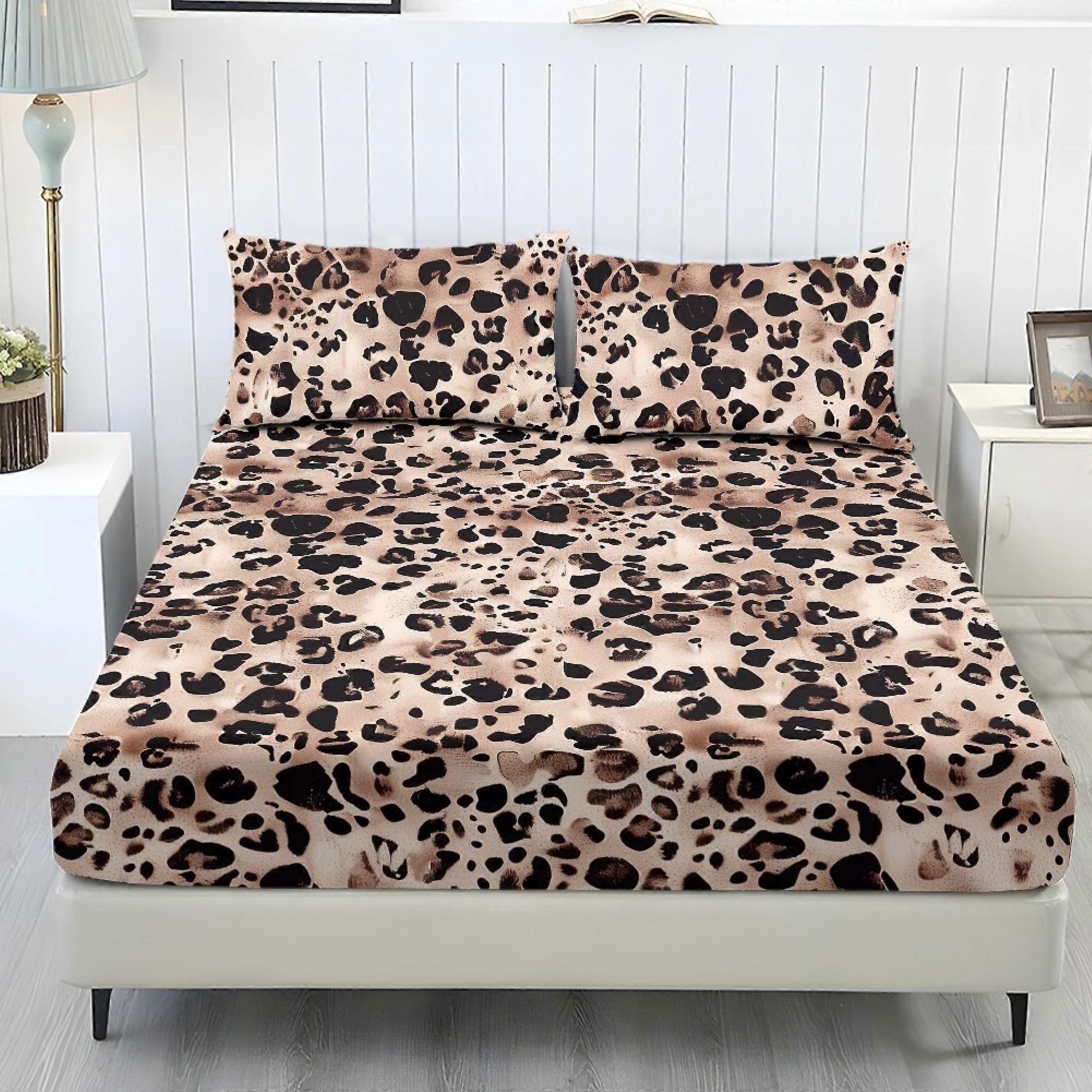 Twin 3-Pc Leopard Print Bedding Set: Fitted Sheet + 2 Pillowcases, Elastic Non-slip, Shrink & Stain Resistant