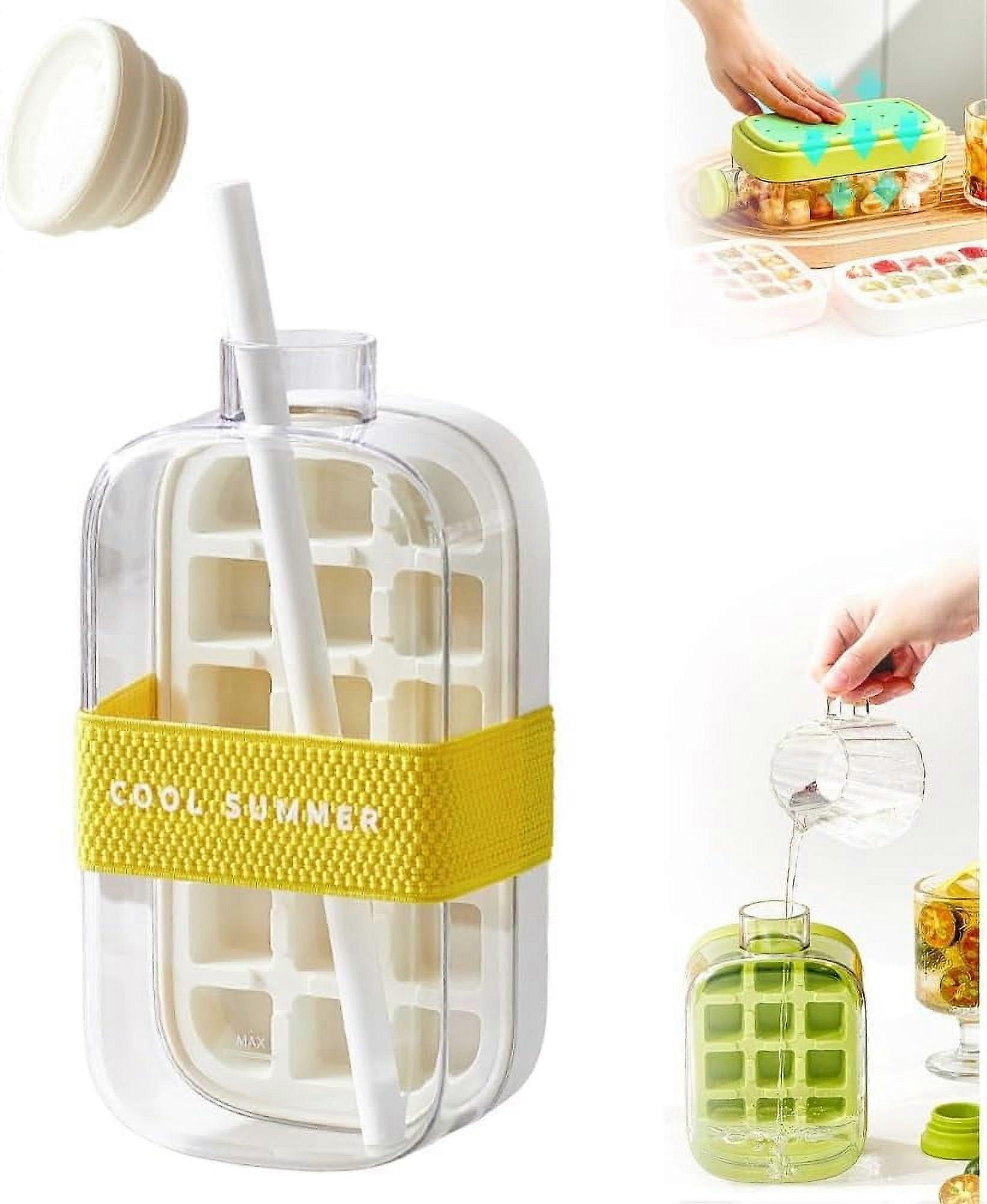 2-in-1 Ice Cube Bottle & Tray, Touch-Free Silicone Ice Maker with Lid & Bin, 18/12-Grid Portable Kettle (White, 800ml)