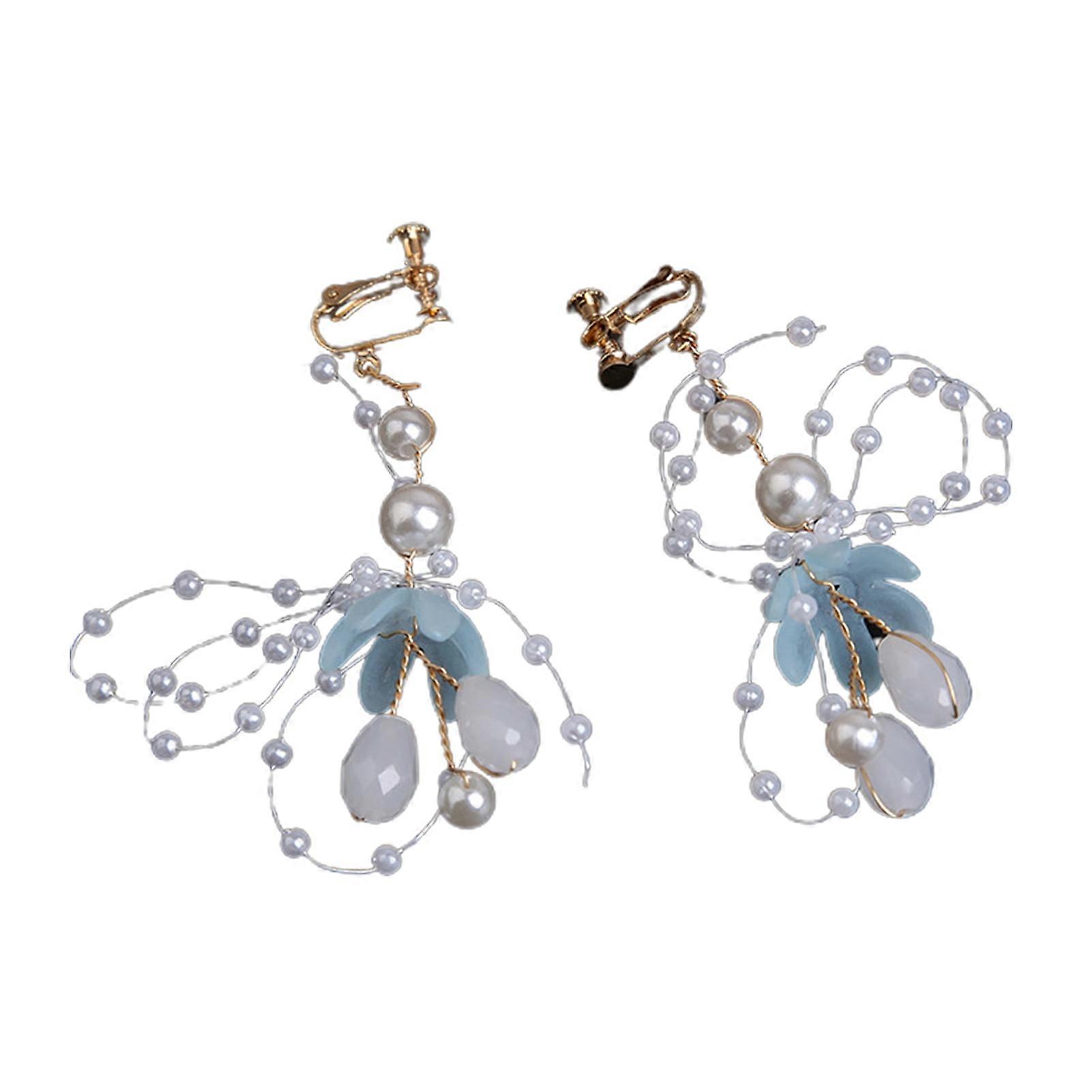 Xinwanna Adjustable Ribbon Lace-up Girls Headband with Faux Pearls & Flower Leaves – Blue, Compatible with Kids Princess Crown Styling