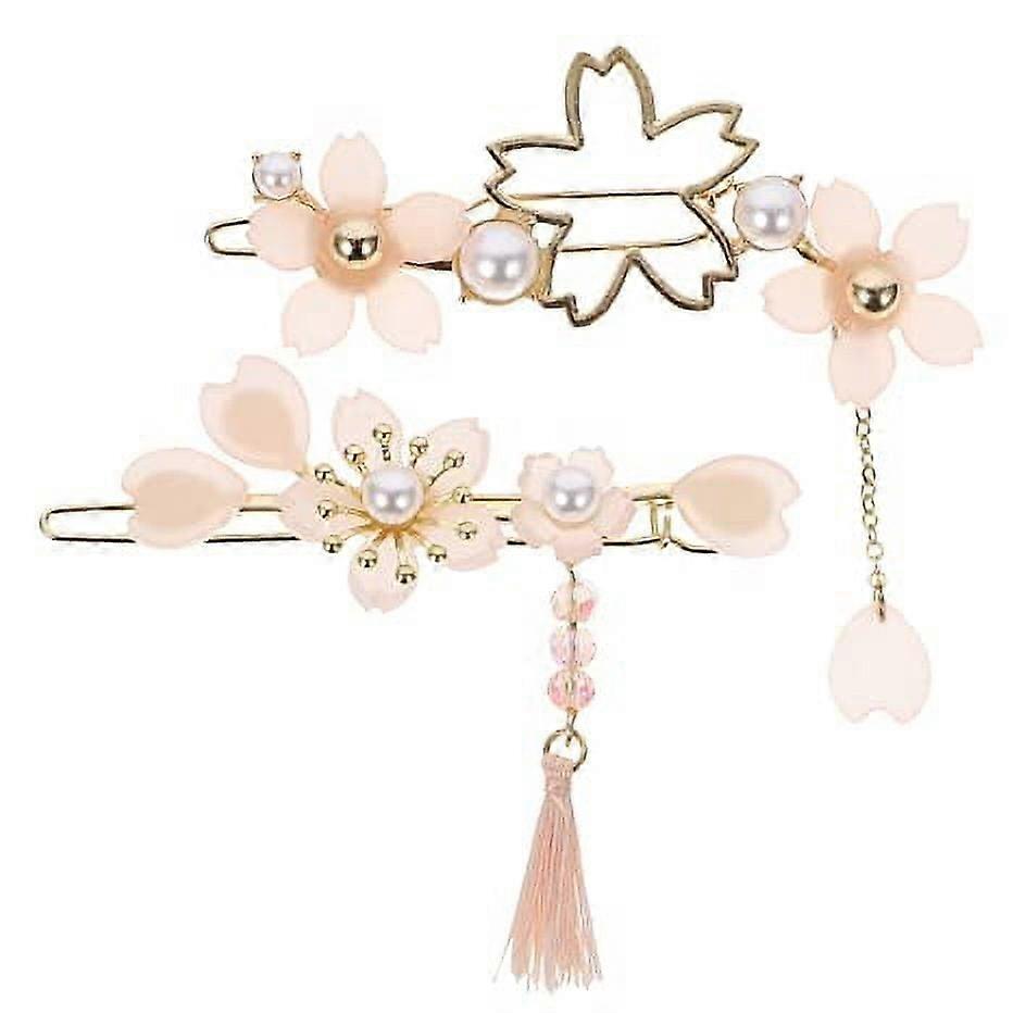 2pcs Sweet Sakura Pearl Hair Clip Alloy Bobby Pins Hair Pin Barrette for Women Girls Kids Teens