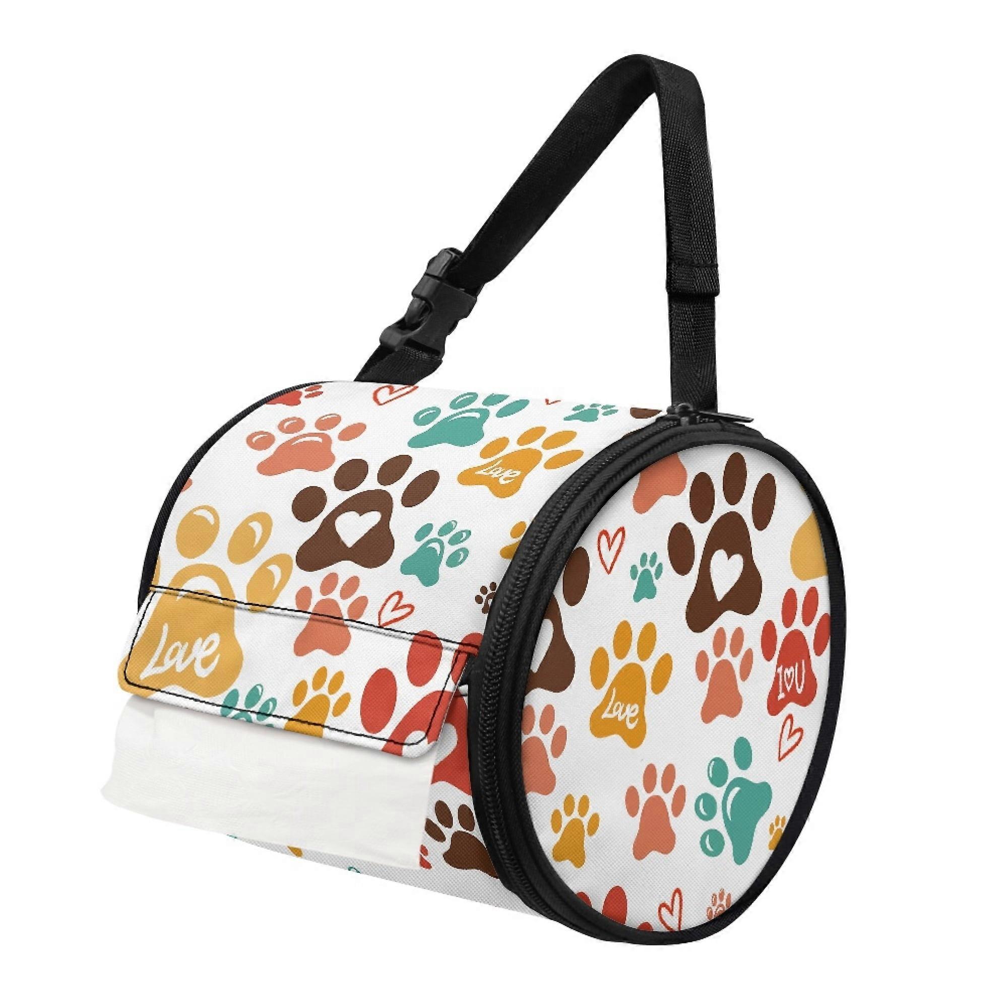 Colorful Paws Round Paper Towel Bag for Car/Office – Adjustable Strap, Lightweight Hanging Dispenser Cover, Compatible with Standard Rolls