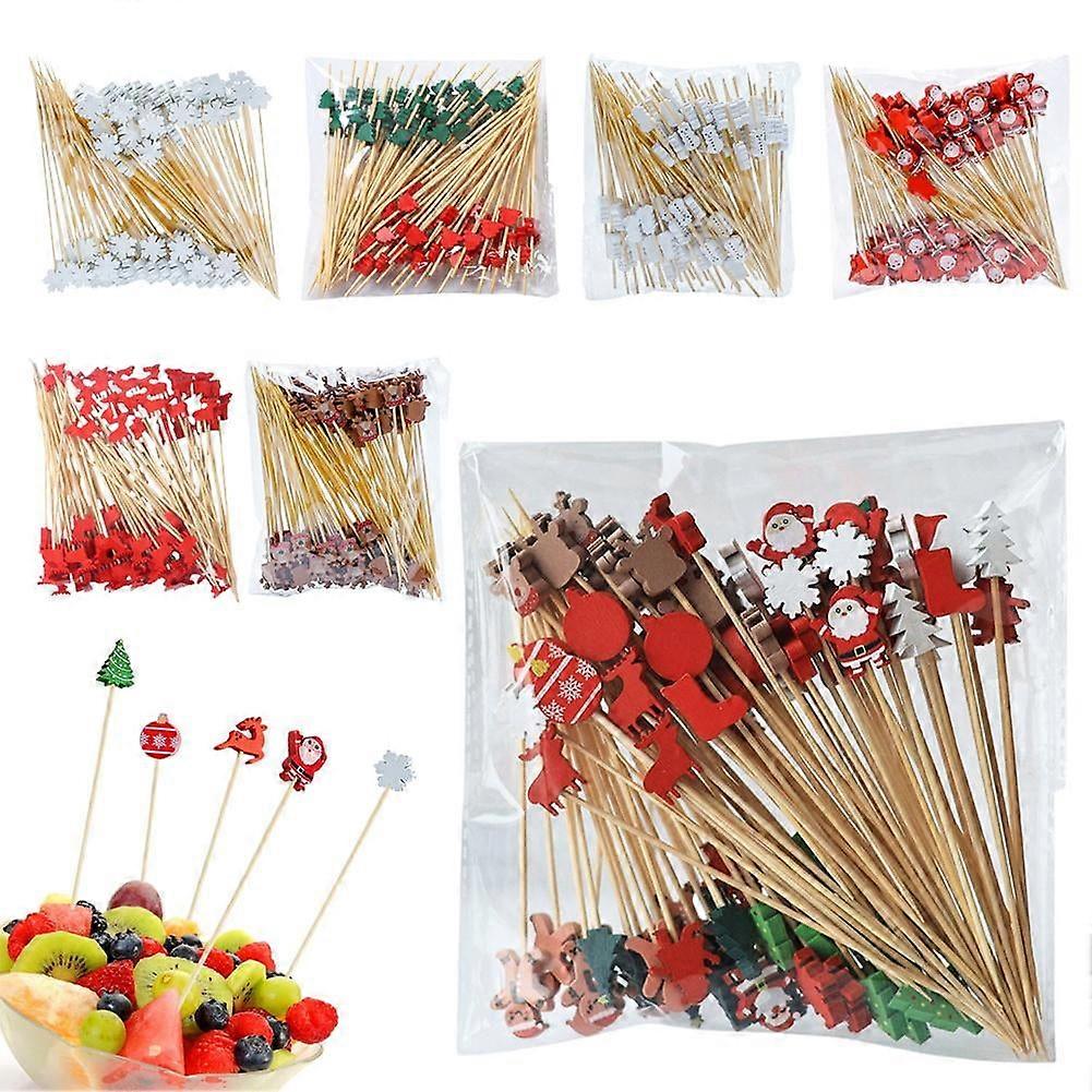 100PACK Christmas Cocktail Picks,Merry Christmas Food Appetizer Skewer Toothpicks,Vintage Xmas Decoration Toothpicks Themed