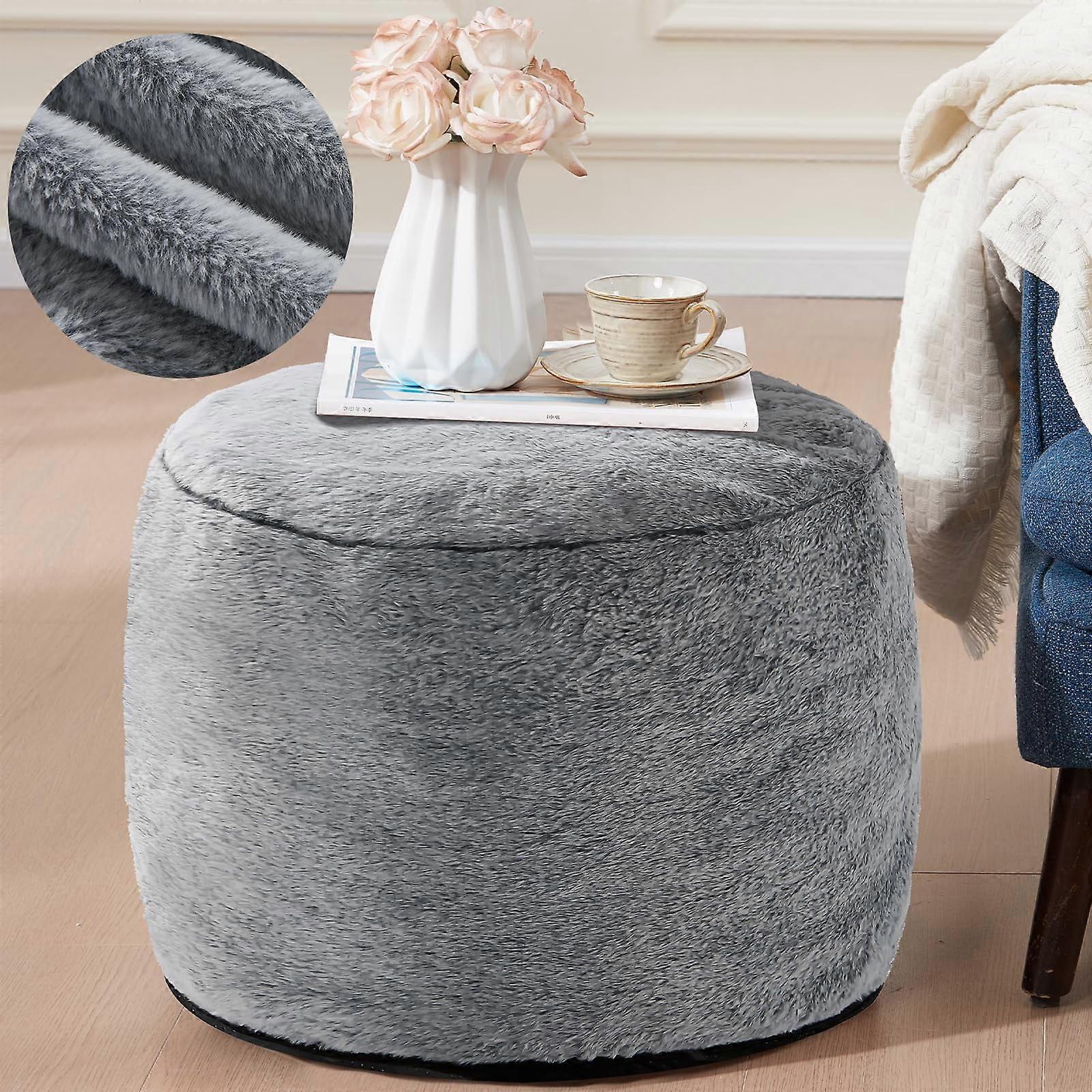 Round Ottoman Foot Rest Pouf, 20x15", Soft Foam, Non-Slip Bottom, Dark Grey