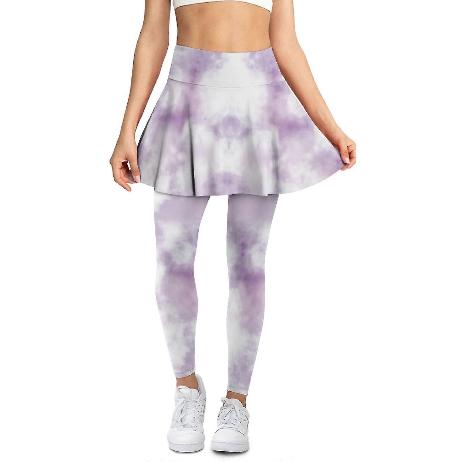 Tie-Dye Violet & White Comfy Leggings with Skirt for Women – Stylish, Machine Washable Skorts for Workout, Dance, Vacation (XL)