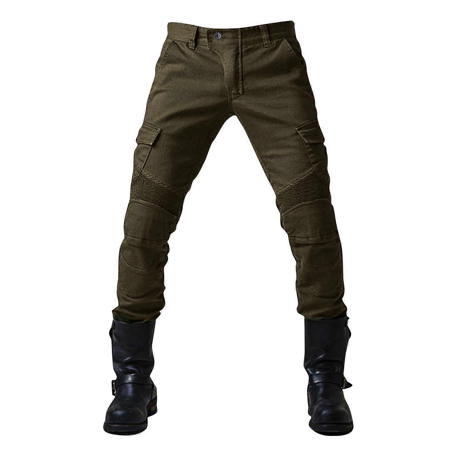 Mens Motorcycle Riding Pants,Motocross Wear Resistant Durable Trousers Motorbike Knee Hip Armored Jeans Army Green 6(M)