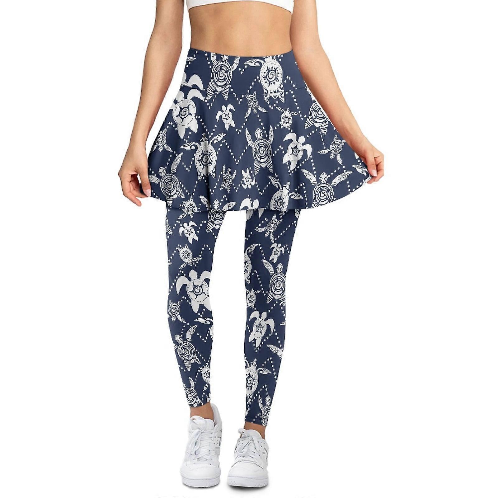 Women's Dark Blue & White Sea Turtle Yoga Skirt with Leggings – Breathable, Stretchy, Stylish Athletic Wear, S