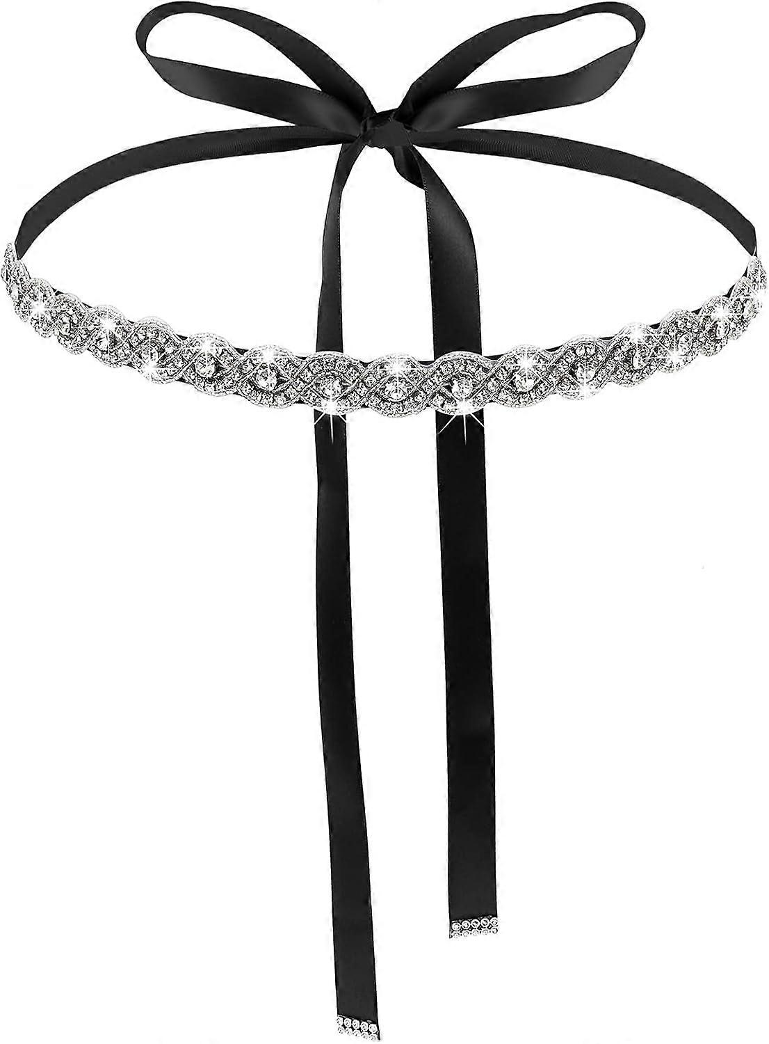 Bridal Rhinestone Wedding Waist Belt, Handcrafted Bling Crystal Belts Adjustable Ribbon Belt for Women Jeans Dress