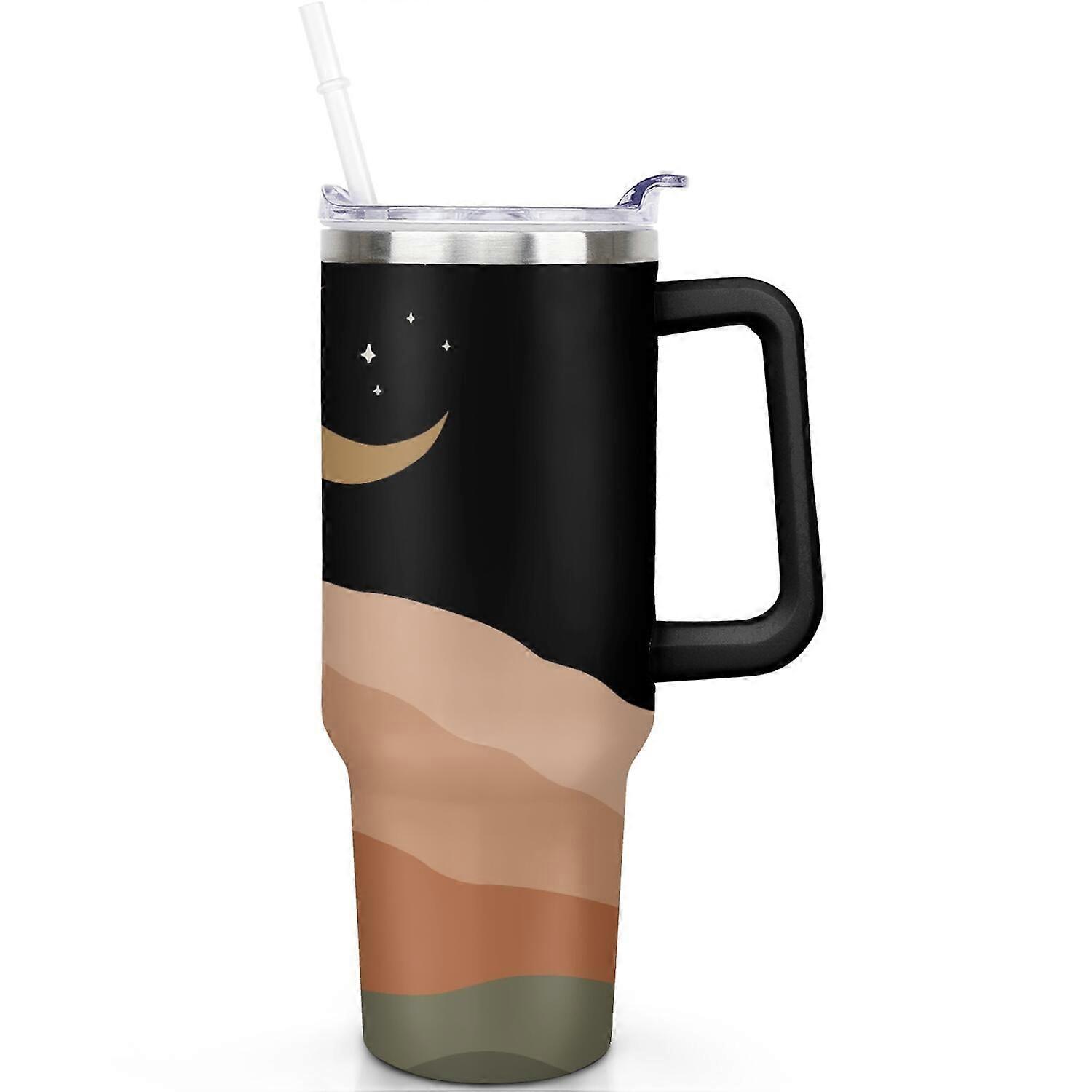 Boho Themed Gift for Boho Style Lovers - 40oz Double Insulated Tumbler With Handle, Spill Proof Coffee Cup & Straw