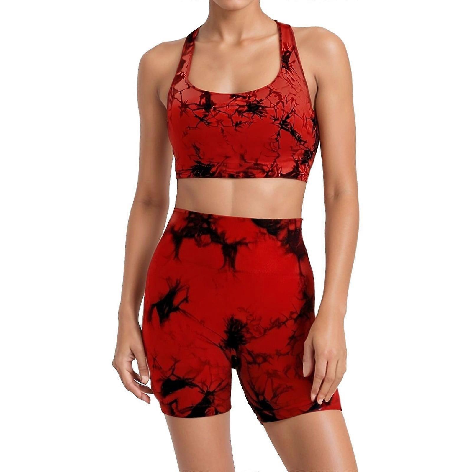 Workout Sets for Women 2 Piece Padded Sports Bra Tank High Waist Booty Gym Shorts Active Yoga Outfits Red L