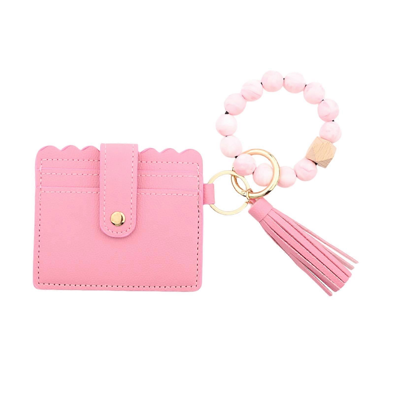 Boho Wristlet Wallet Keychain with Beaded Tassel – Leather & Silicone Bracelet Wallet (A,B), compatible with all keys